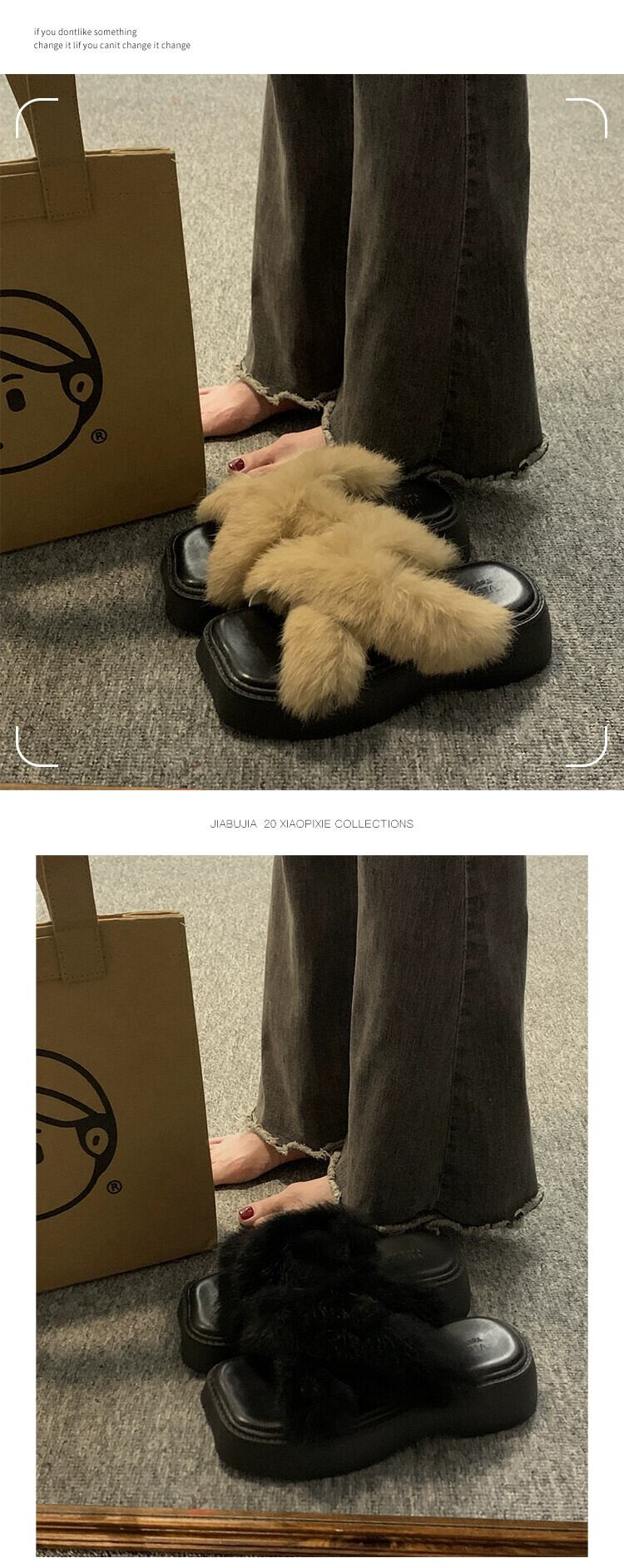 Jia Bujia スクエアトゥ スリッポン レディース アウター 2023 新しい秋のレトロな気質のフランスの厚い底の毛皮のスリッパ ミュール 靴 シューズ オータム 秋物 スクウェア jxjxf37287912836