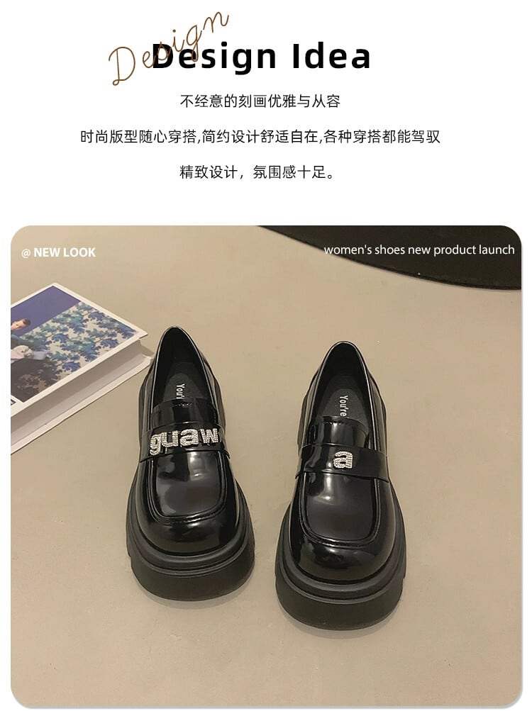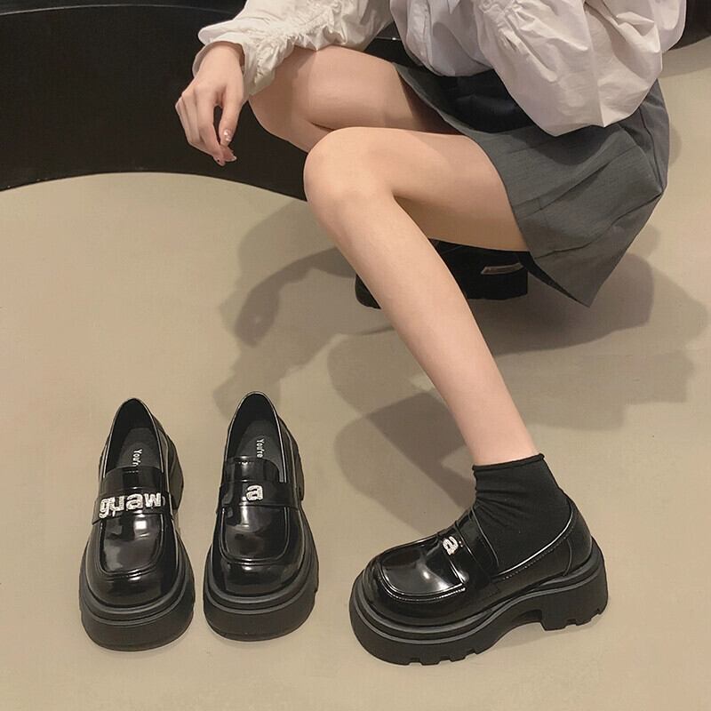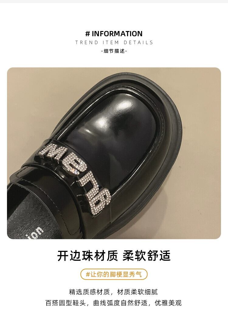 Jia Bujia 婦人靴 2023 秋レトロスタイルラインストーン太いヒール滑り止めローファートレンディ シューズ オータム 秋物 jxjxf91129141705