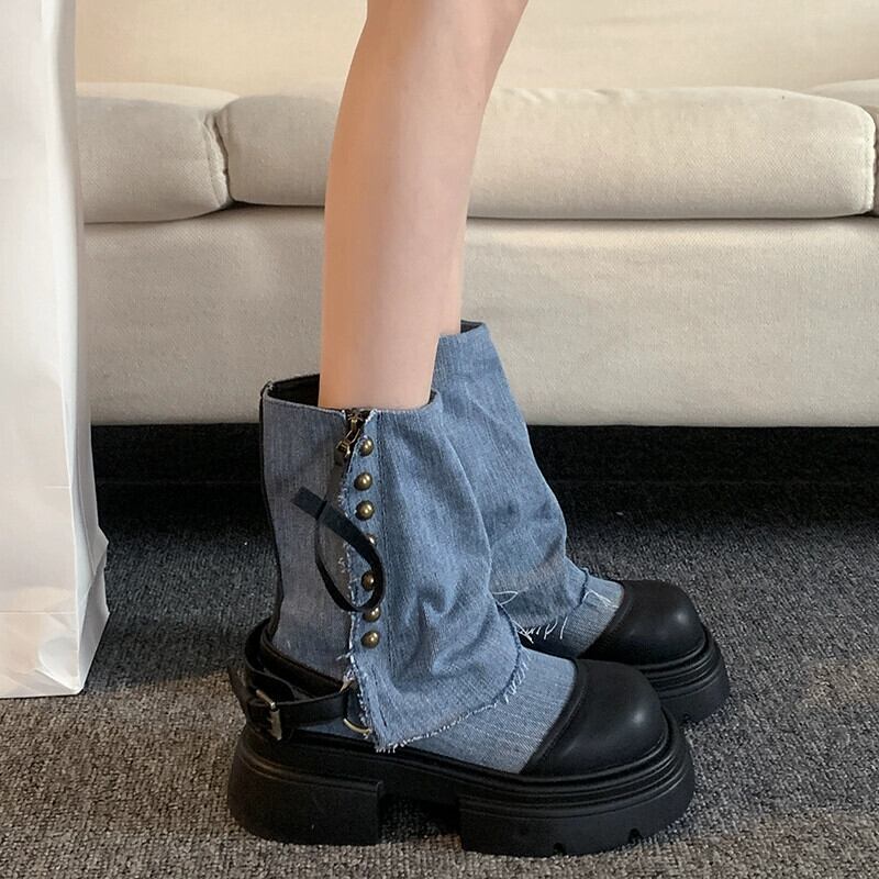 Jia Bujia インターネットセレブショートブーツ女性 2023 秋の新スタイルレトロ西洋スタイルファッショナブルでハンサムなオートバイズボンブーツ 靴 シューズ オータム 秋物 jxjxf20632462817