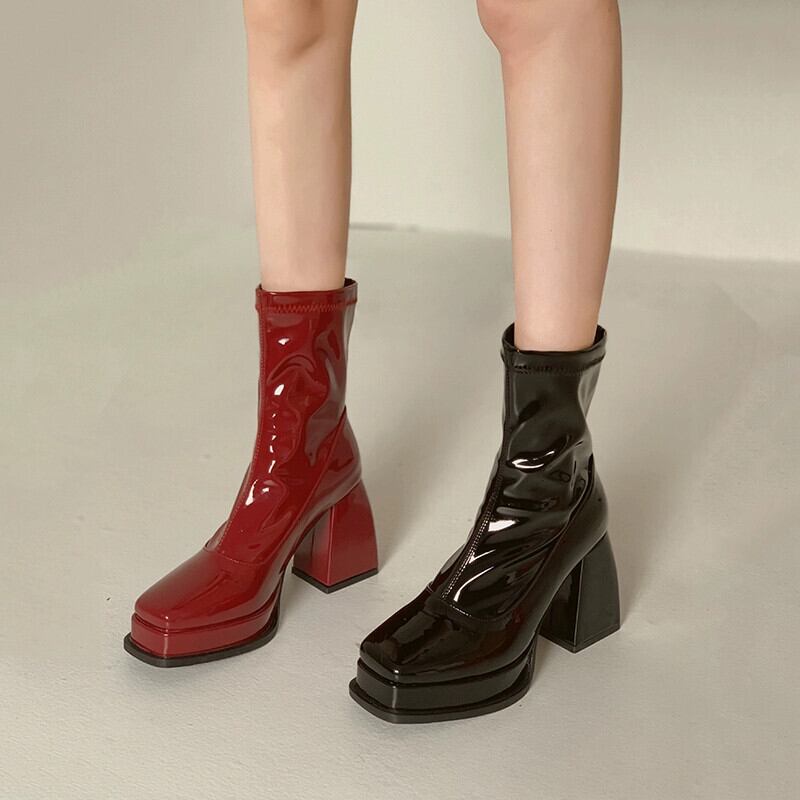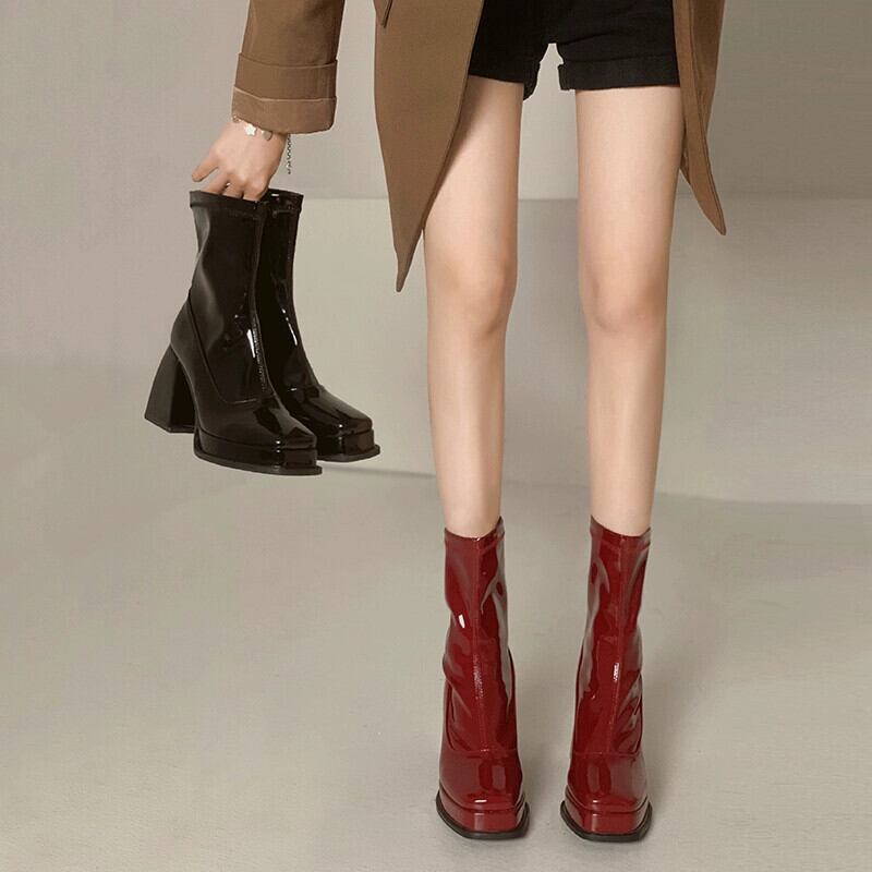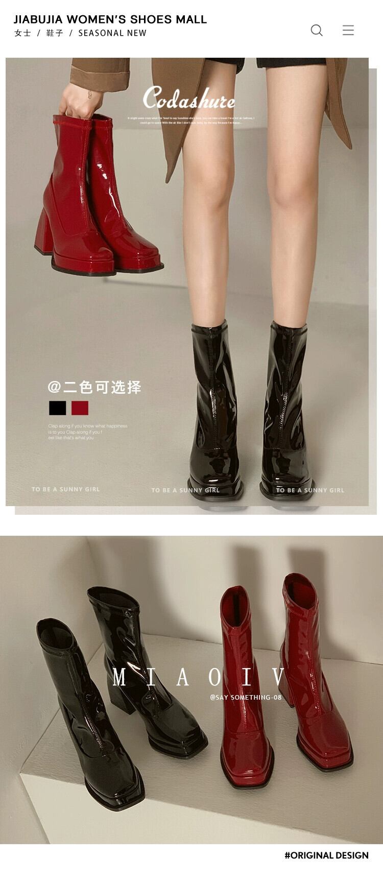 Jia Bujia 秋のショートブーツの女性 2023 レトロな気質多用途スモールヒールスリムブーツ 靴 シューズ オータム 秋物 jxjxf10178752020