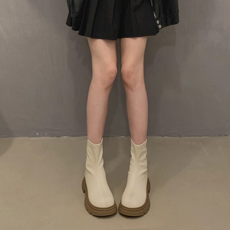 Jia Bujia レディース ショートブーツ 2023 秋の新スタイルフレンチスタイルのシンプルで快適なソフトソールカジュアルスリムブーツ 靴 シューズ オータム 秋物 jxjxf80026684900