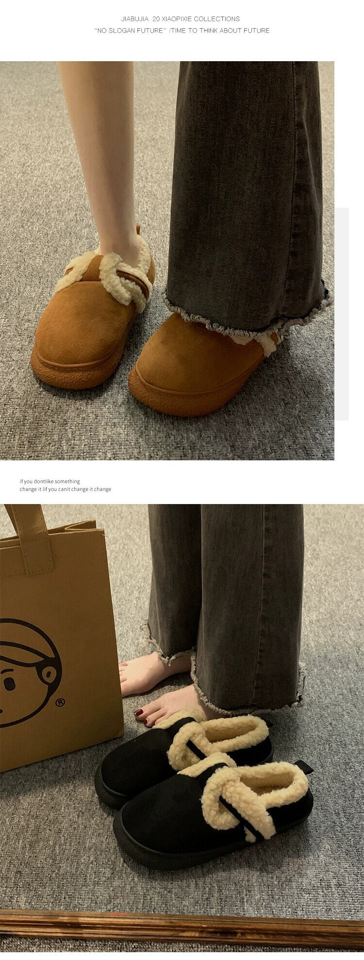 Jia Bujia 秋の綿の靴 2023 新しいレトロスタイル comtable 暖かいソフトソールカジュアルスノーブーツトレンド シューズ コットン オータム 秋物 jxjxf49385329542