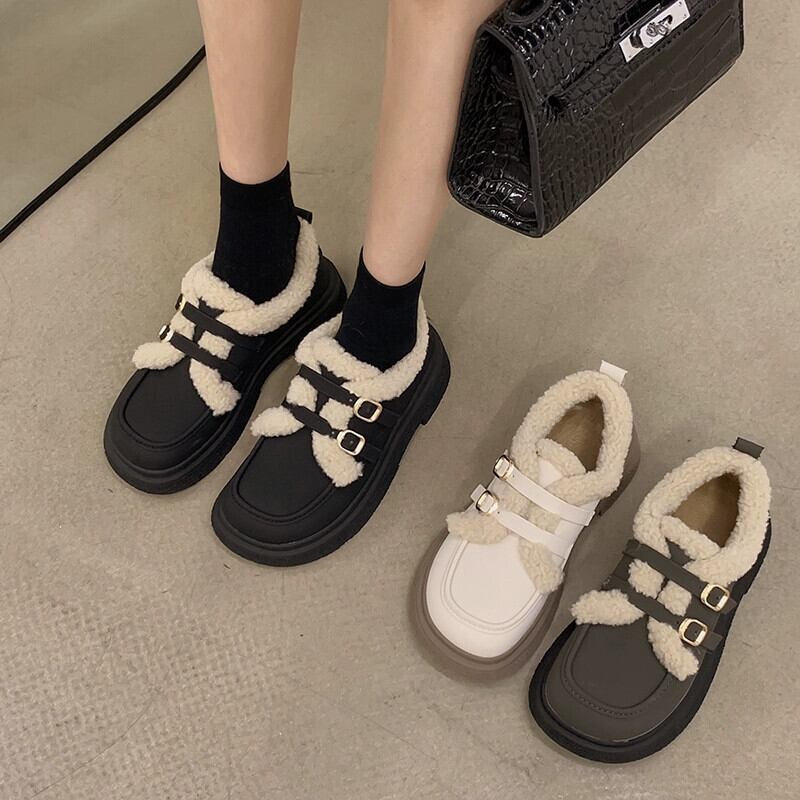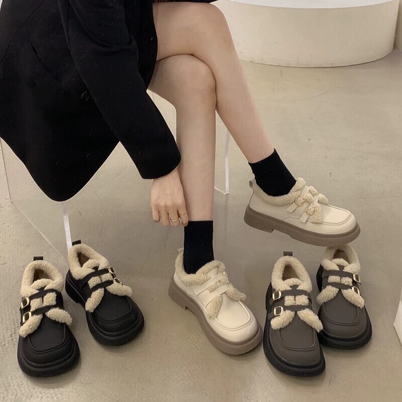 Jia Bujia 婦人靴 2023 秋の新スタイルレトロスタイルプラスベルベット comtable 厚底暖かい小さな革靴トレンド シューズ オータム 秋物 レザー jxjxf6703130164