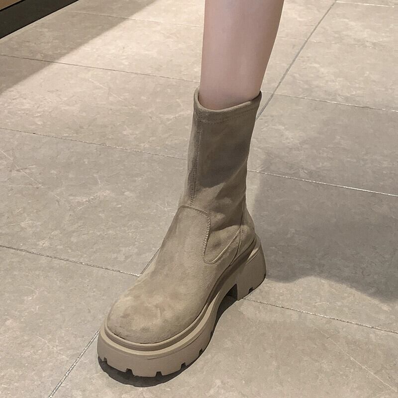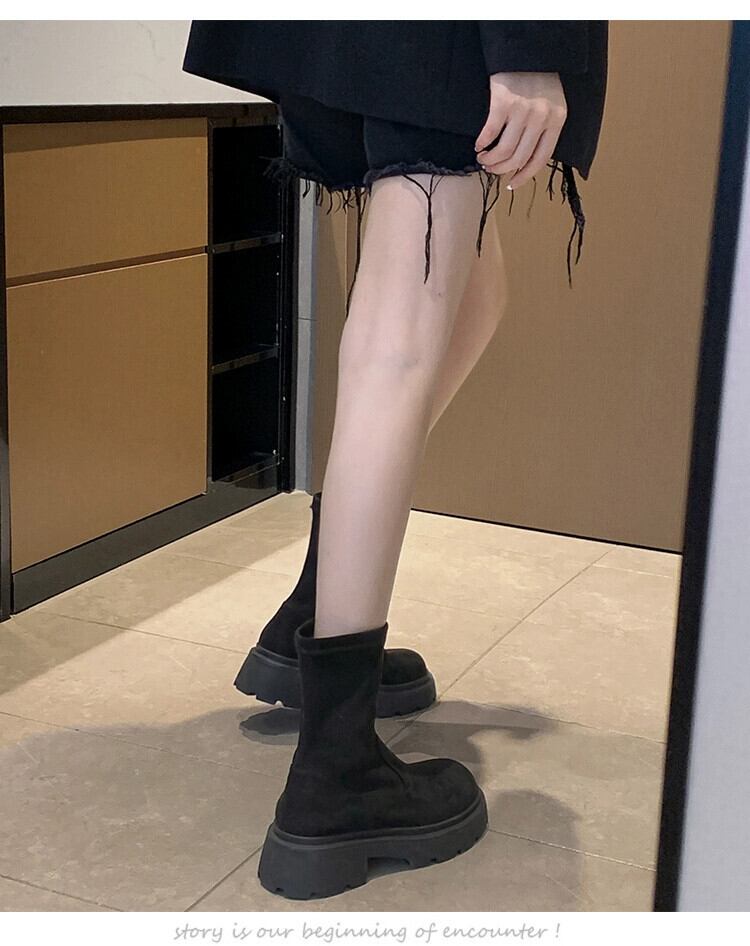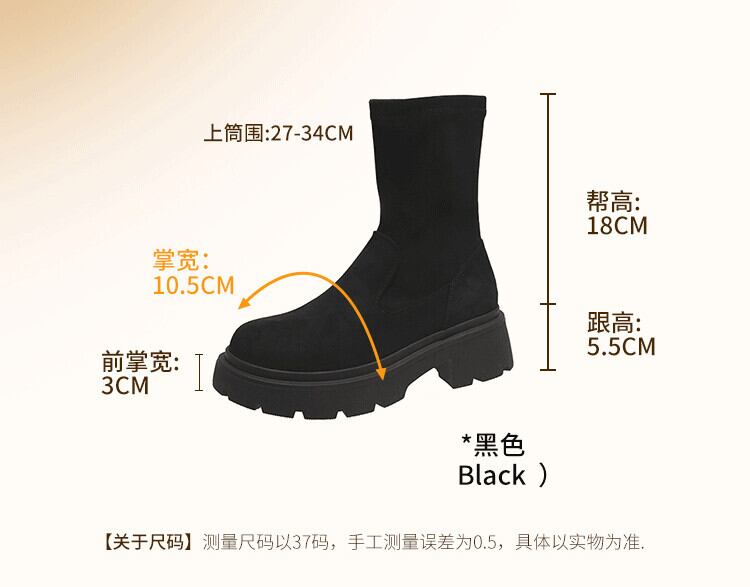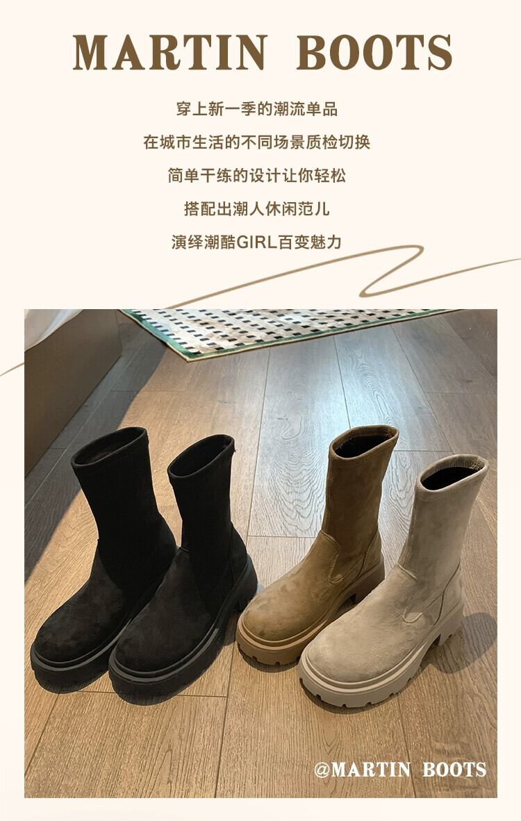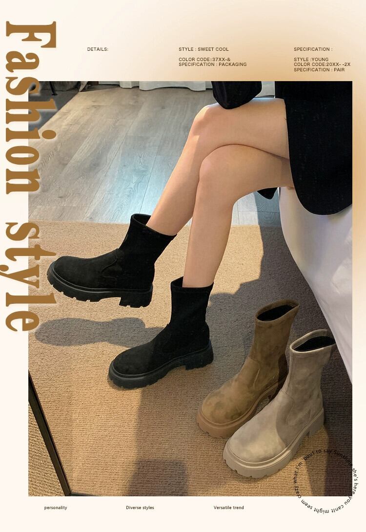 Jia Bufake 厚いヒール弾性ブーツの女性 2023 新しい秋のスタイル comtable レトロな気質多目的スリムショートブーツ 靴 シューズ エラスティック 伸縮 オータム 秋物 jxjxf55817196457