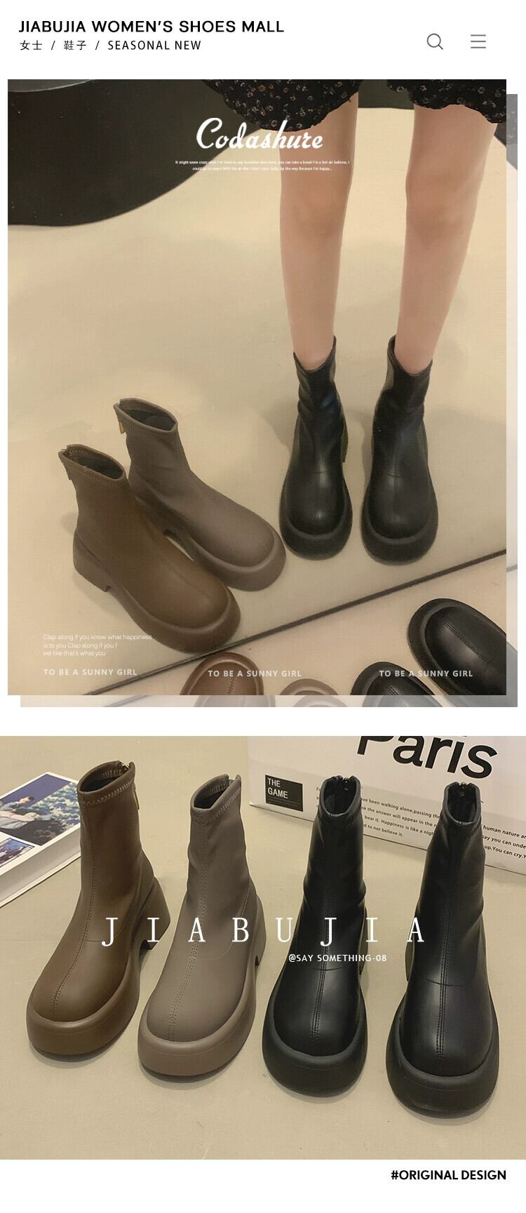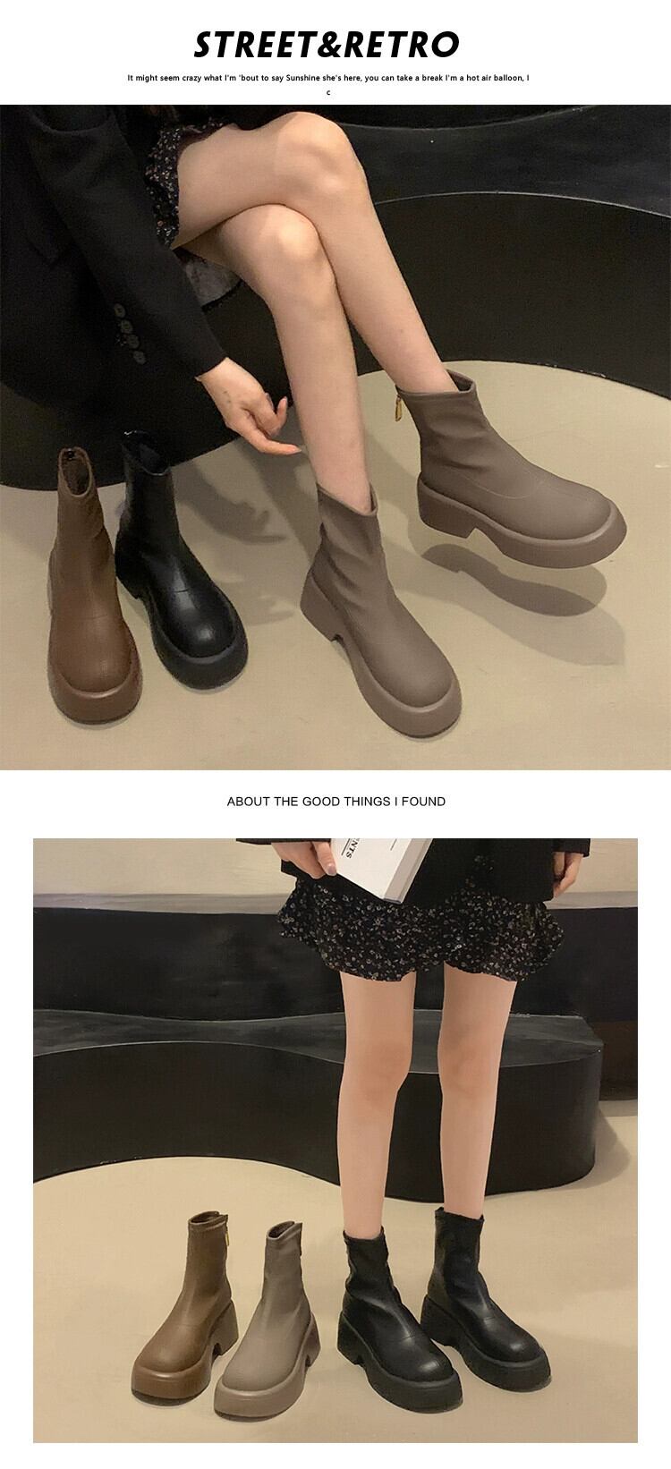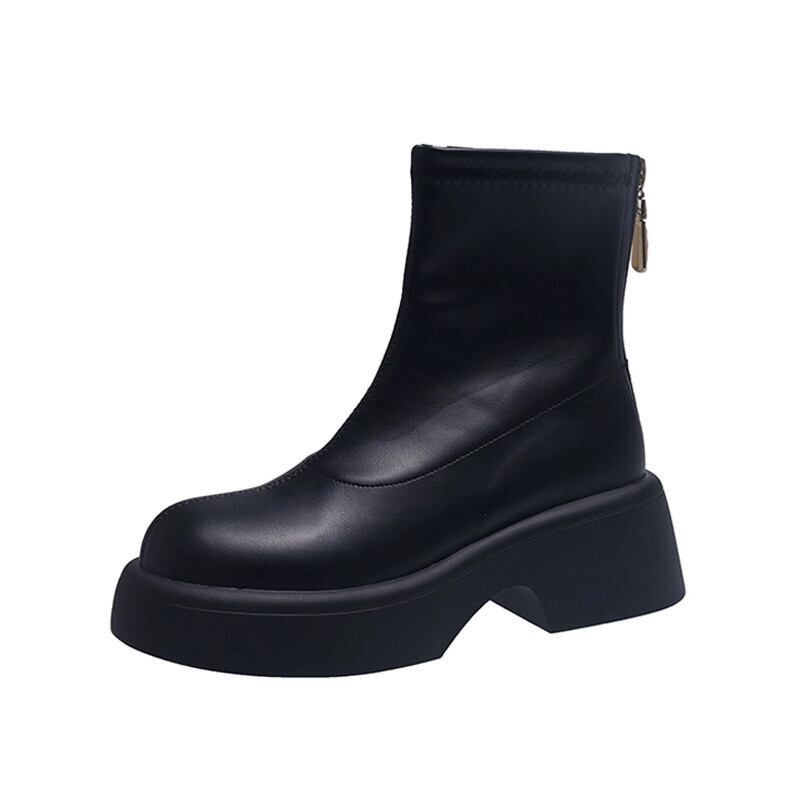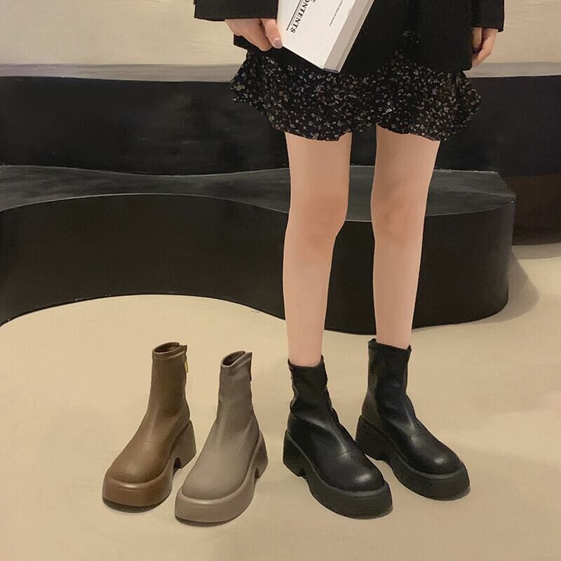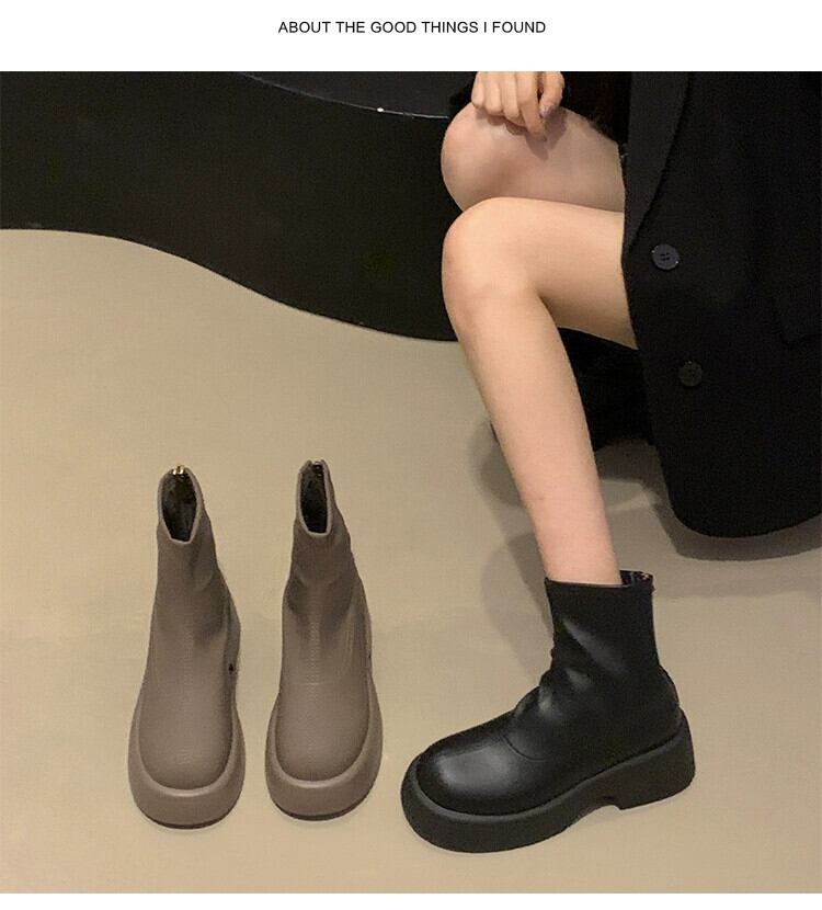 Jia Bujia 厚底レディースショートブーツ 2023 秋レトロシンプル多用途フレンチスリムブーツ 靴 シューズ オータム 秋物 jxjxf61485089985