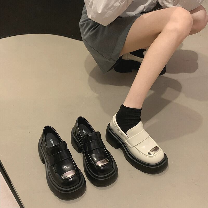 Jia Bufake シングルシューズ女性 2023 秋の新スタイルシンプルなレトロ多用途ファッション太いヒールカジュアル通勤ローファー 靴 オータム 秋物 jxjxf20436780716
