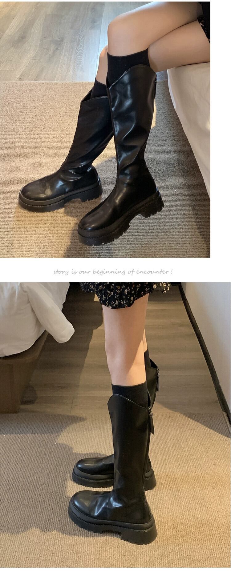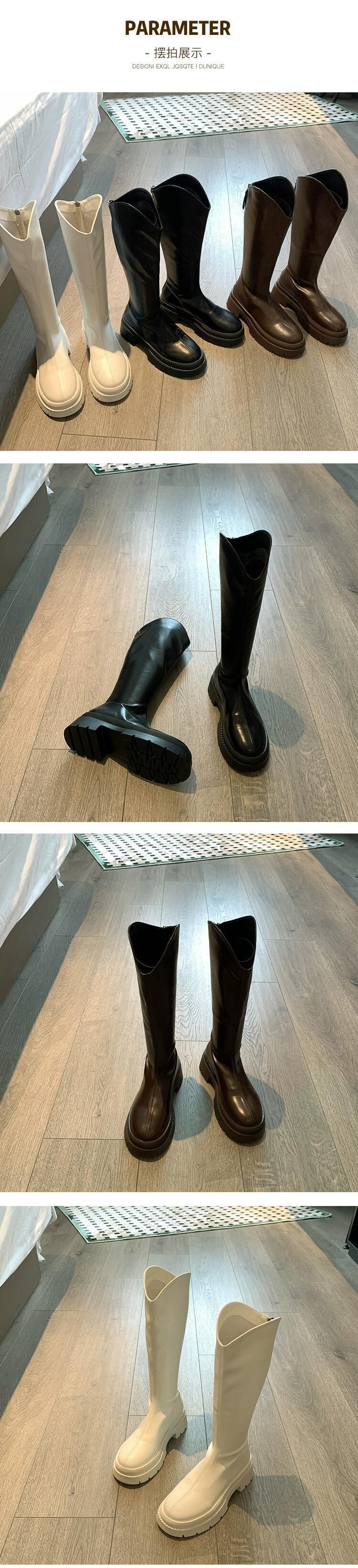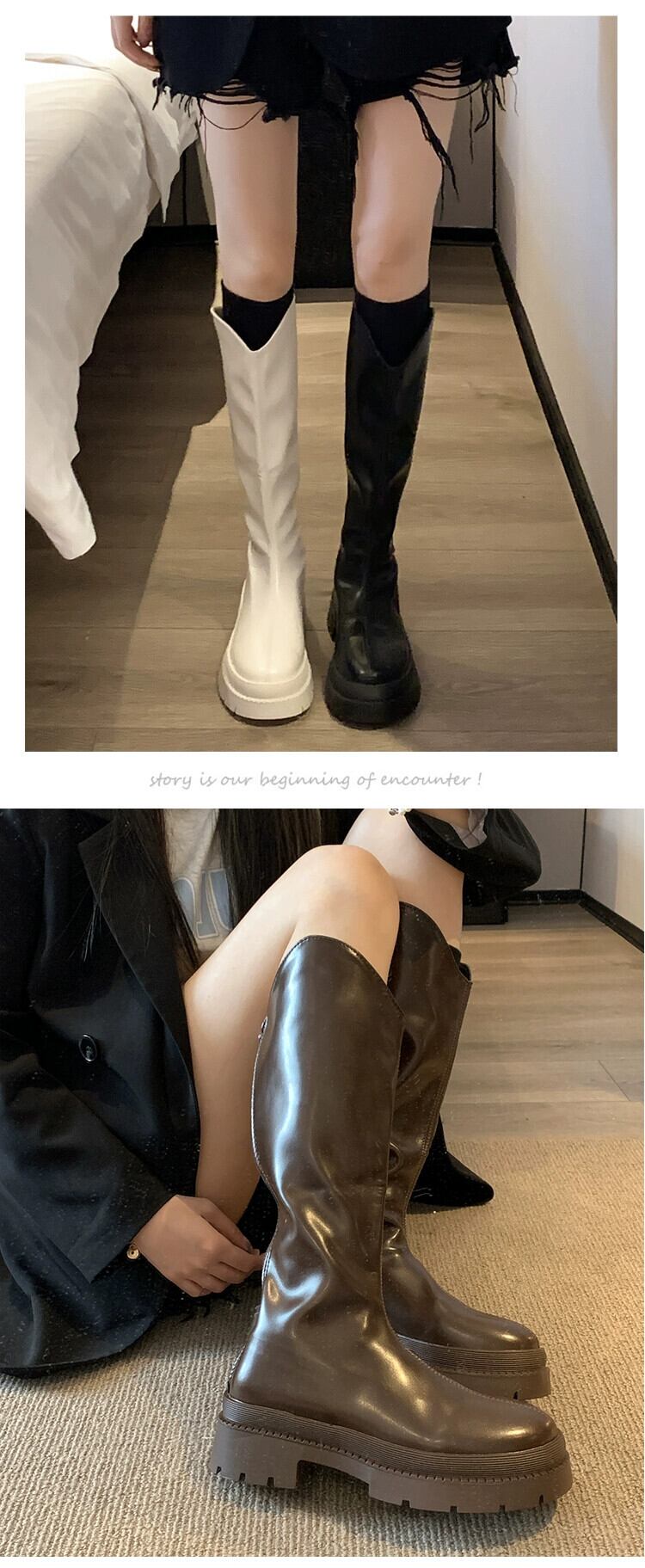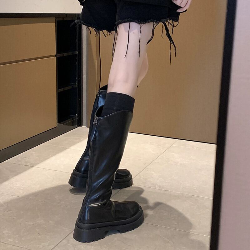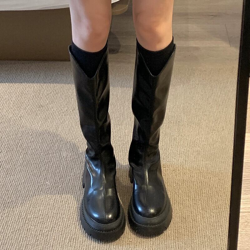 Jia Bufake ロングブーツの女性の秋 2023 新しいファッション気質シンプルなレトロ太いヒール強化スリムブーツ 靴 シューズ オータム 秋物 jxjxf7922251740