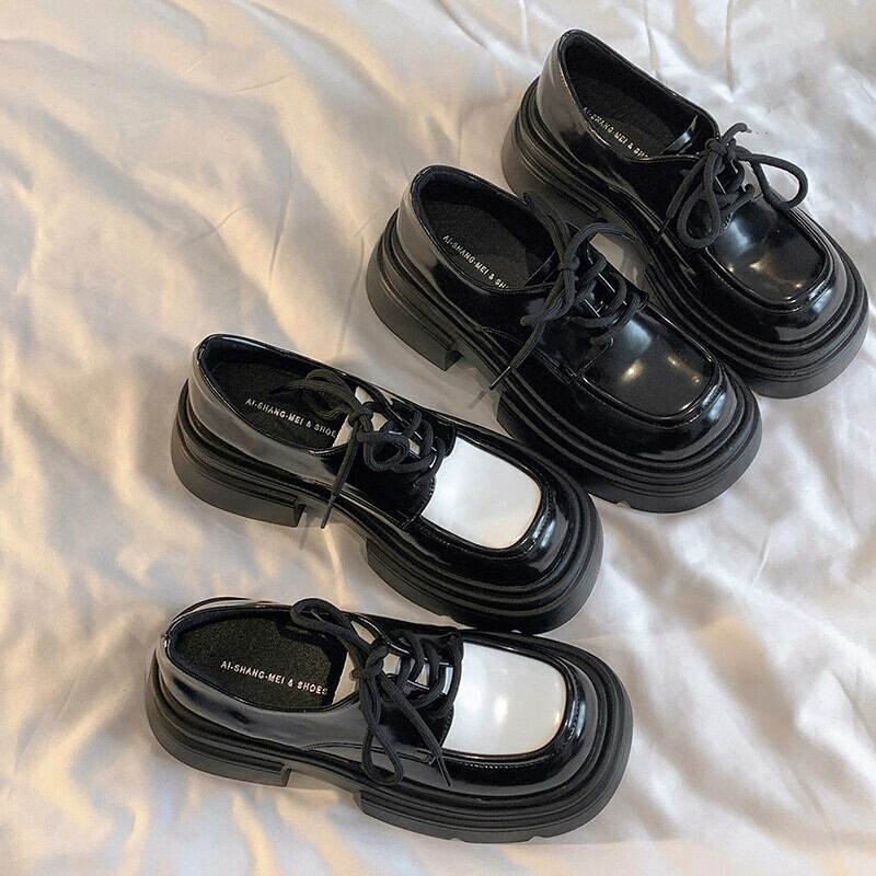 Jia Bujia 英国スタイルの小さな革の靴の女性 2023 秋の新フレンチレトロな eign スタイル厚いヒール増加シングルシューズトレンド オータム 秋物 レザー jxjxf49837052917