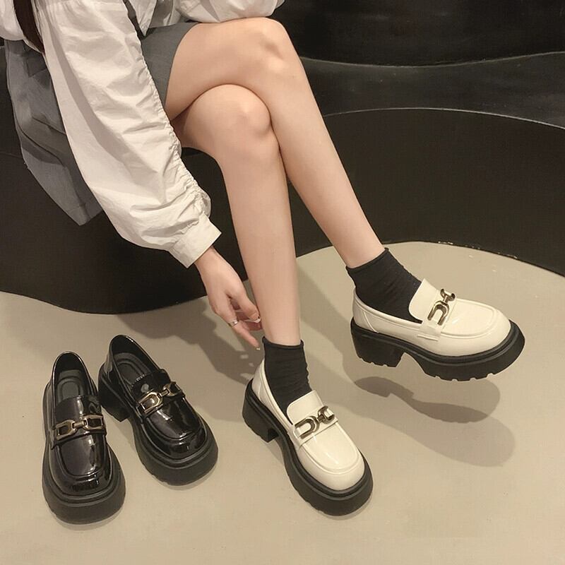 Jia Bujia 英国スタイルの小さな革靴の女性の厚い底と高さの増加 2023 新しいローファー黒スリッポン靴秋のスタイル シューズ ブラック オータム 秋物 レザー jxjxf76760900766