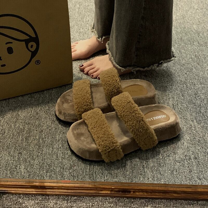 Jia Bujia スリッパ レディース、2023 秋の新スタイル、レトロ、快適、ソフトソール、多用途のファースリッパ ミュール 靴 シューズ オータム 秋物 jxjxf54913464137