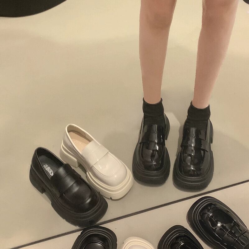 Jia Bujia ローファー女性の 2023 秋スタイル超ホットレトロ多用途 Comtable 厚底通勤小さな革靴トレンディ シューズ オータム 秋物 レザー jxjxf30643088875