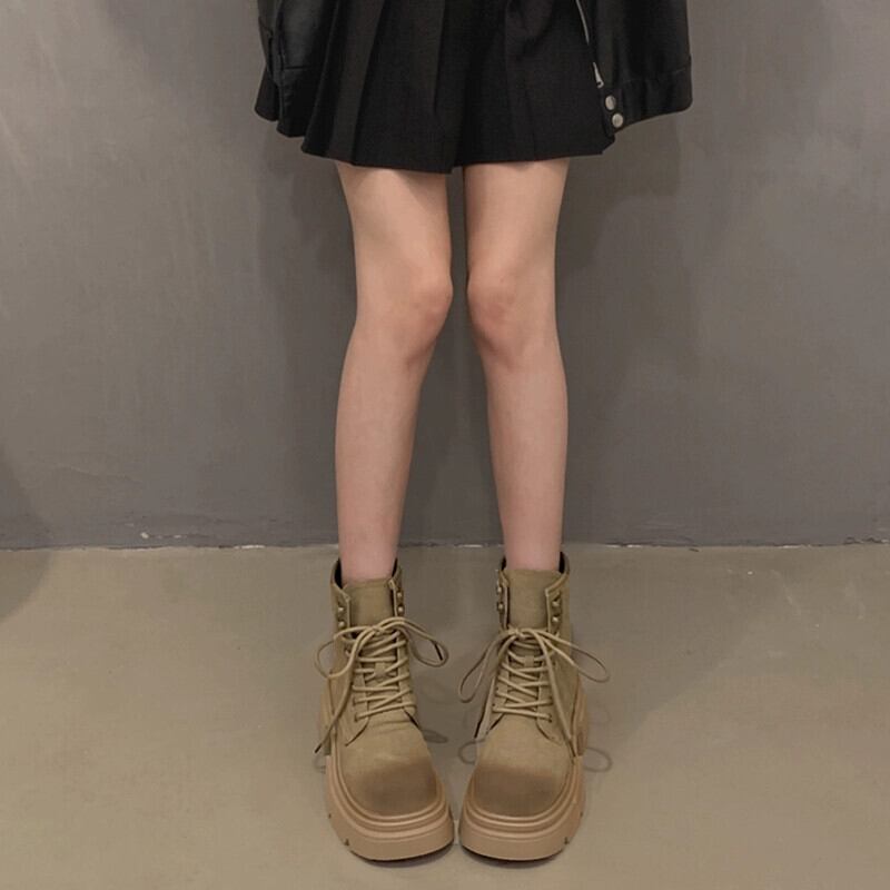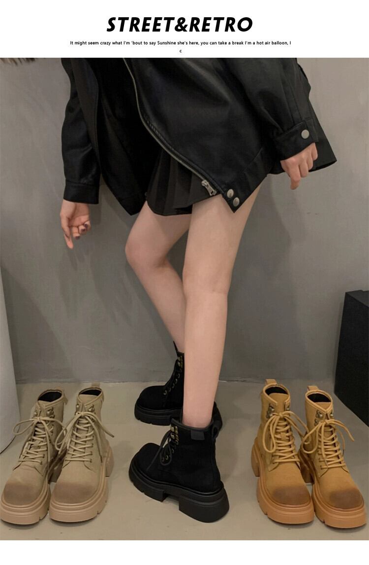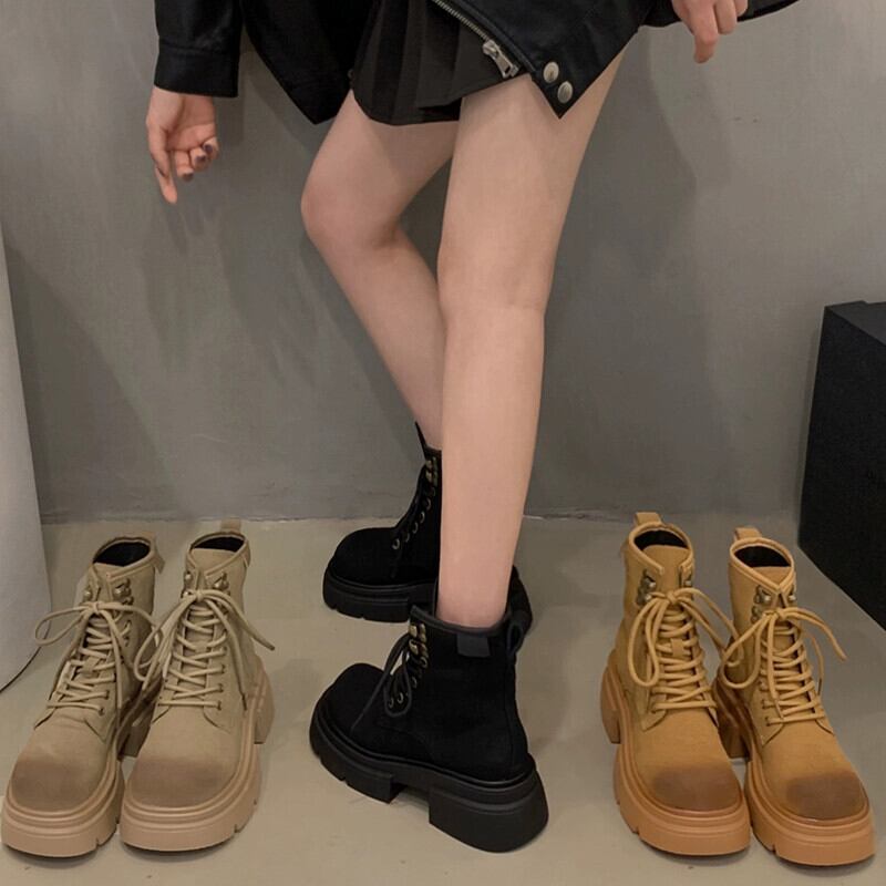 Jia Bujia レディースショートブーツ 2023 秋の新ファッション多用途レトロハンサム太いヒールストリートマーティンブーツトレンディな 靴 シューズ オータム 秋物 jxjxf11186488199