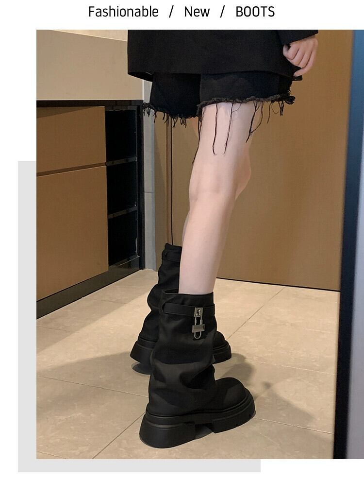 Jia Bujia ブーツの女性のショートブーツ 2023 秋の新ファッショントレンドハンサムなオートバイ多用途厚いヒールズボンブーツ 靴 シューズ オータム 秋物 jxjxf33696307795