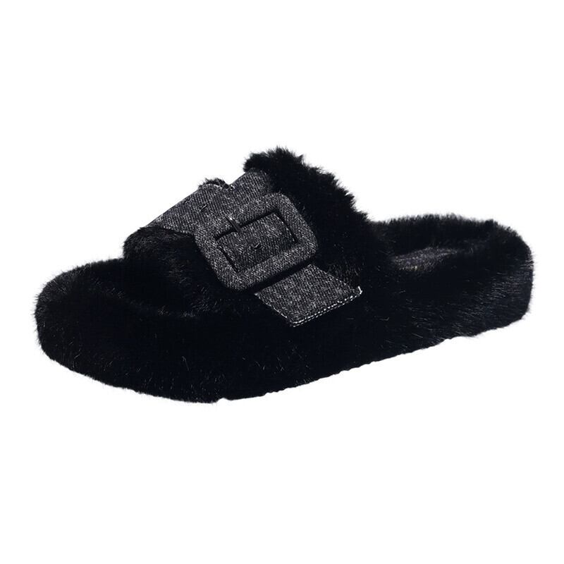 Jia Bu のフェイク毛皮のようなスリッパレディースアウター 2023 秋の新ファッションレトロベルトバックル厚底 comtable スリッポンスリッパ ミュール 靴 シューズ オータム 秋物 ハーネス jxjxf37954393209