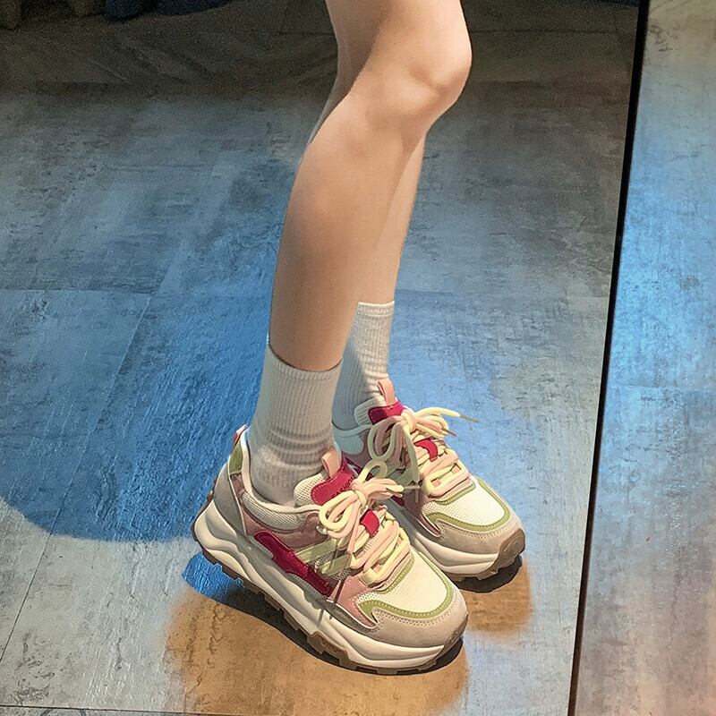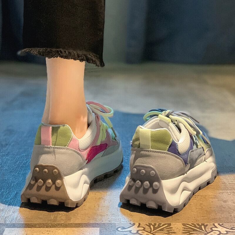 Jia Bujia 残りガンプ靴の女性の 2023 秋レトロ人気西洋スタイル Comtable 厚底スニーカー シューズ オータム 秋物 jxjxf14246930819