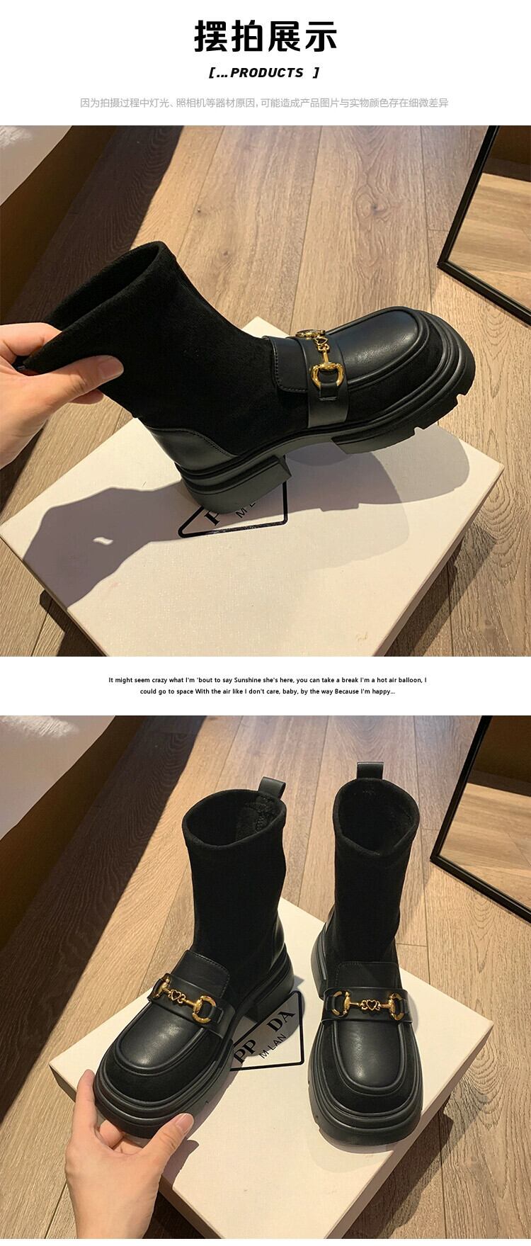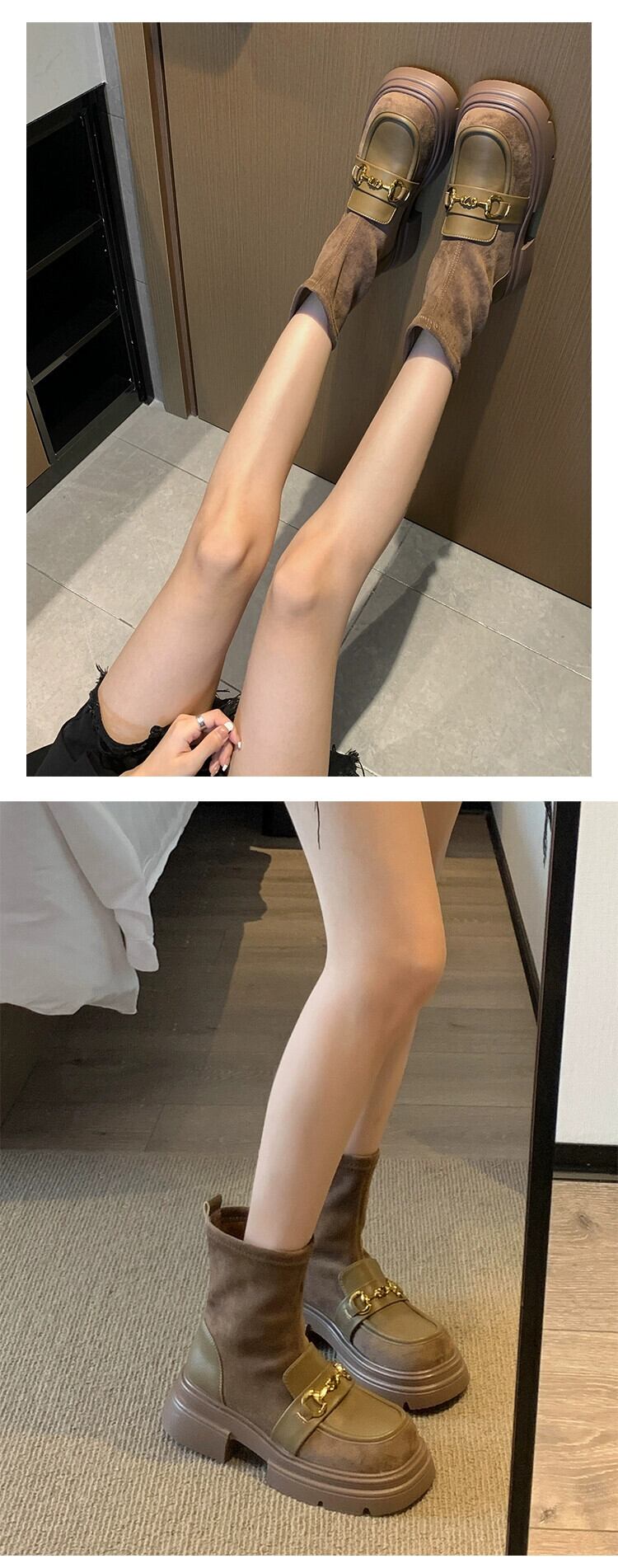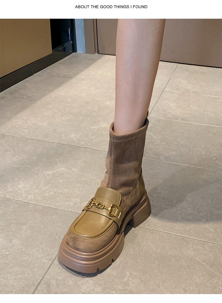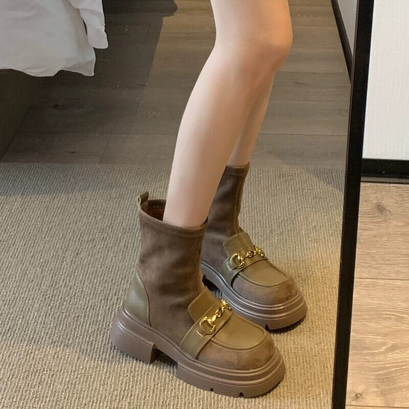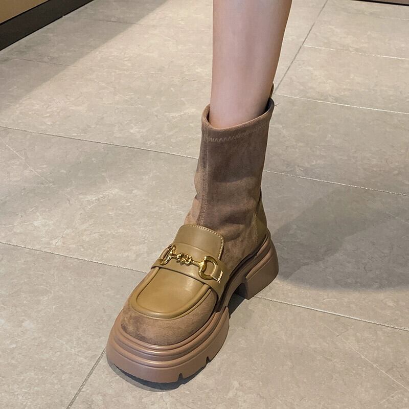 Jia Bufake 厚いヒール弾性ブーツの女性 2023 新秋レトロ comtable 多用途メタルファッションスリムブーツ 靴 シューズ エラスティック 伸縮 オータム 秋物 jxjxf20184277696