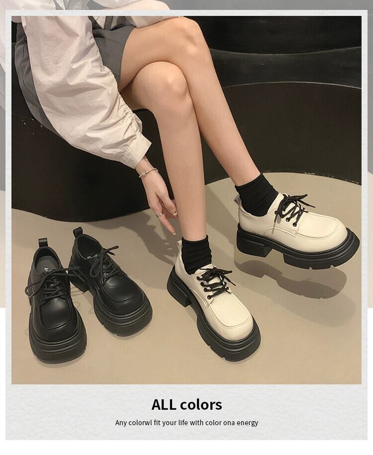 Jia Bujia 英国スタイルの太いヒールの女性の小さな革靴 2023 秋の新スタイルの eign スタイル多用途フレンチとスタイルの靴 シューズ オータム 秋物 レザー jxjxf60077806649