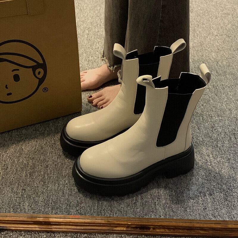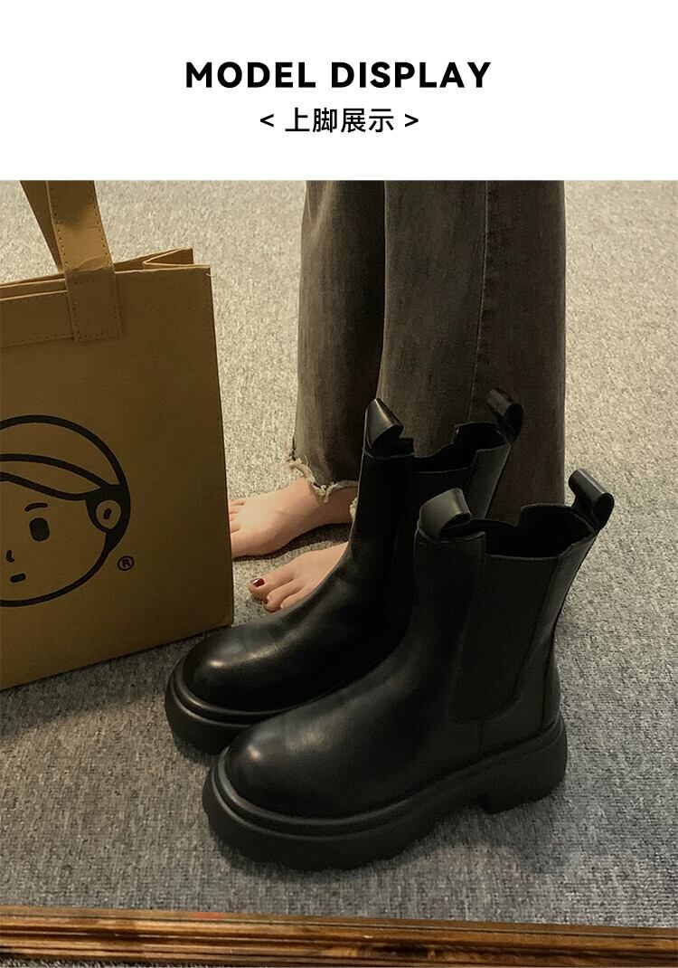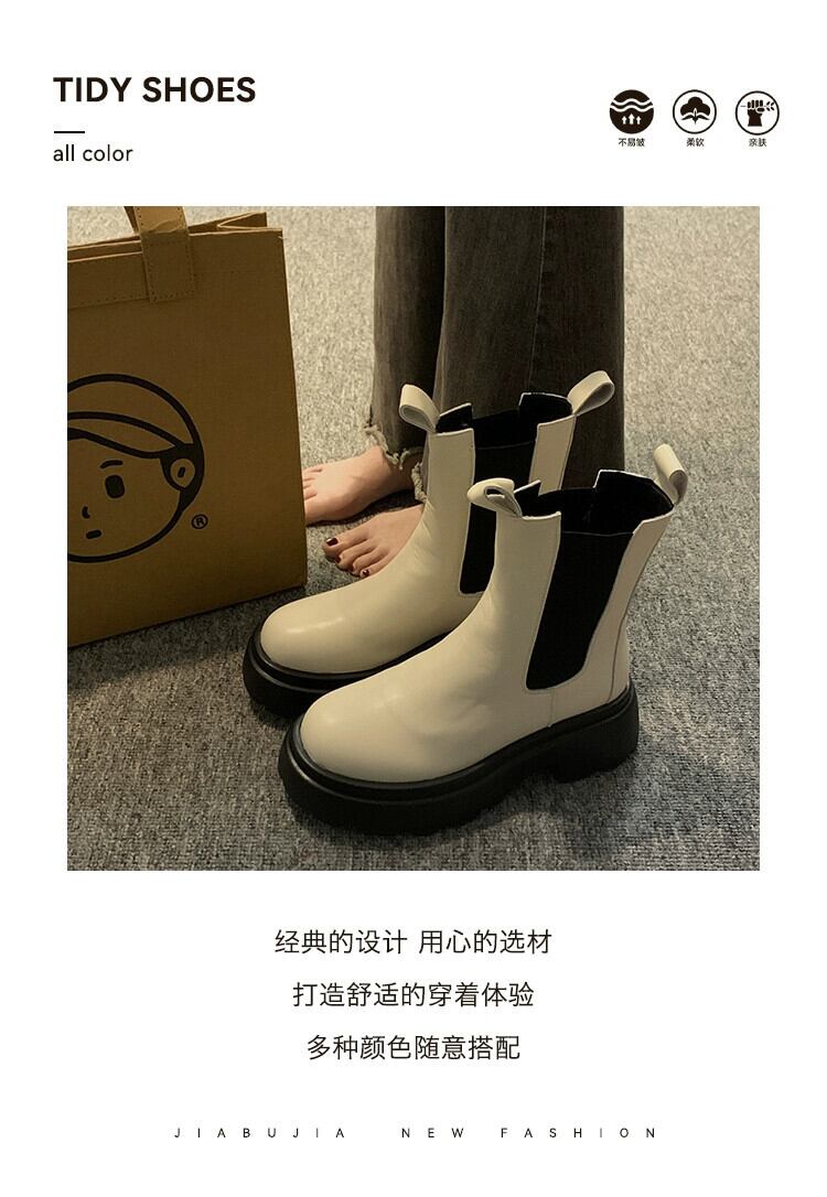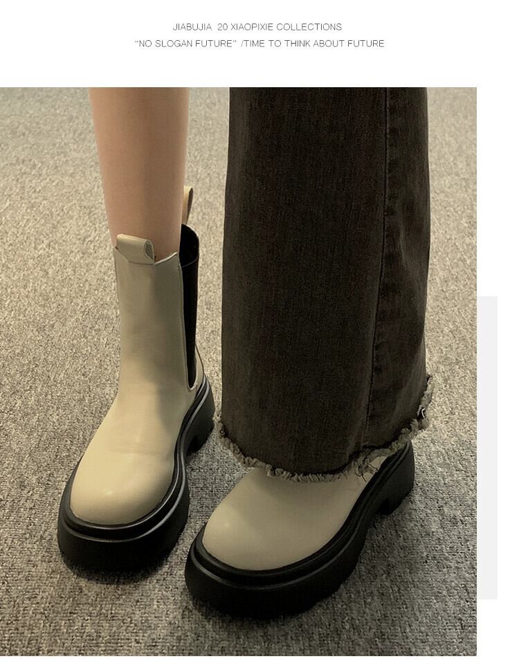 Jia Bujia チェルシーショートブーツ女性 2023 秋の新ファッション多用途レトロハンサム厚底オートバイブーツトレンド 靴 シューズ オータム 秋物 jxjxf36611023468