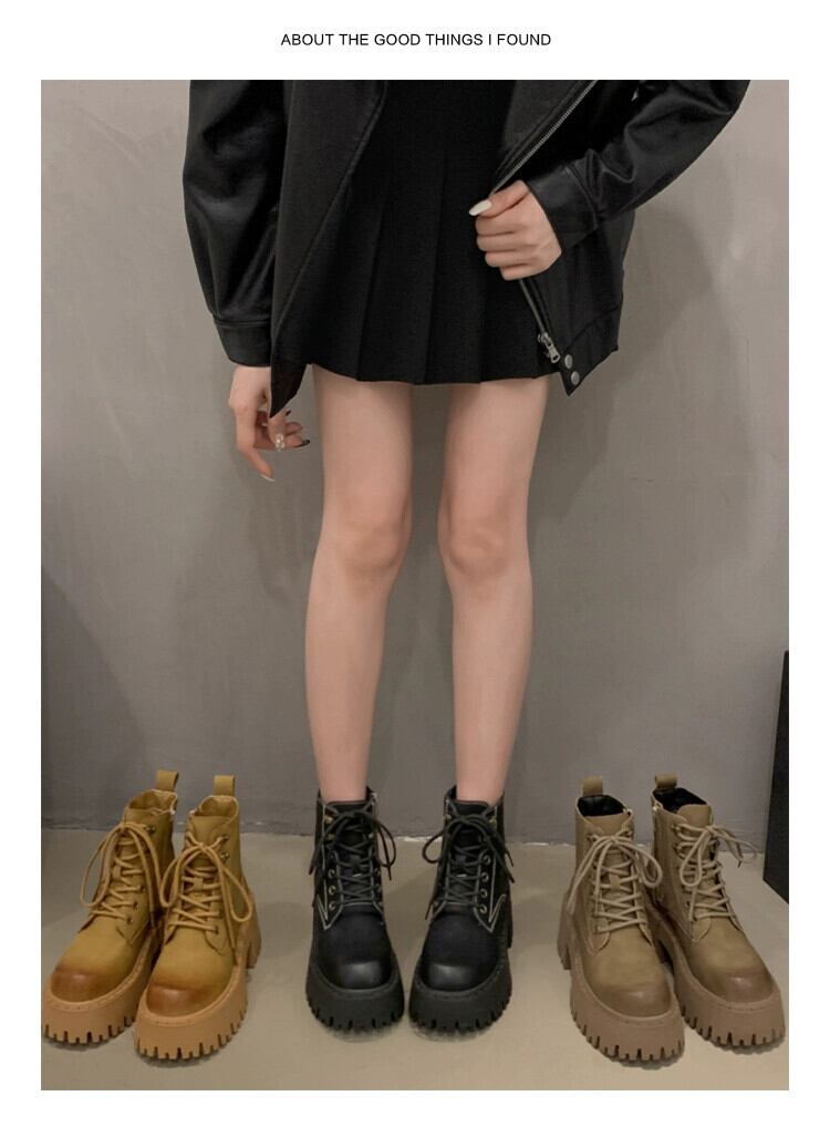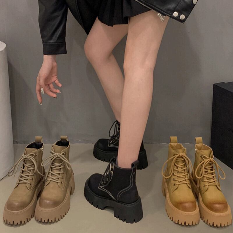 Jia Bufake ショートブーツ レディース 2023 秋多用途レトロハンサム太いヒール滑り止めストリートマーティンブーツ 靴 シューズ オータム 秋物 jxjxf67729996570