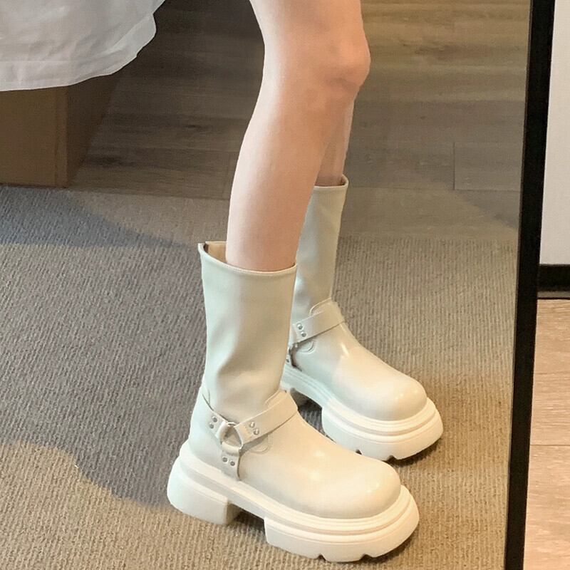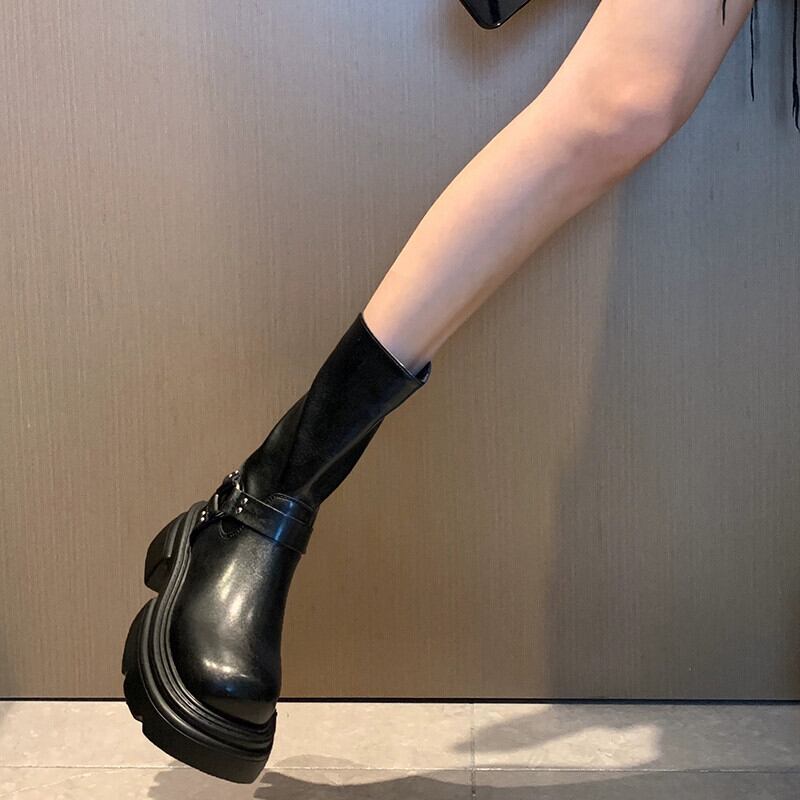 Jia Bujia インターネット有名人ショートブーツ女性 2023 秋の新ファッション多用途レトロハンサム厚底オートバイブーツ 靴 シューズ オータム 秋物 jxjxf87012890870