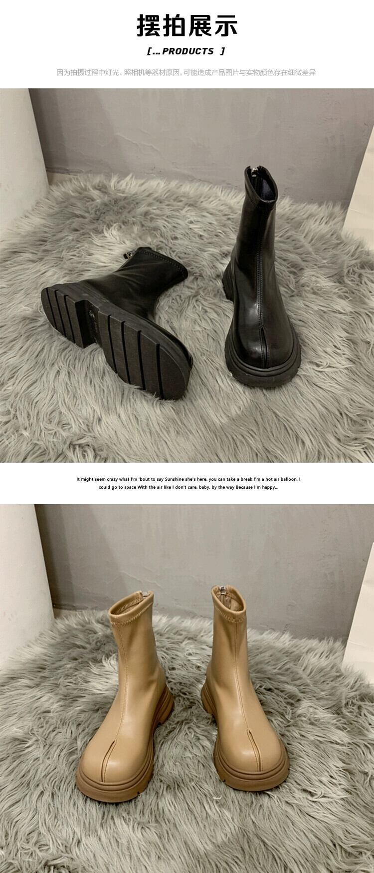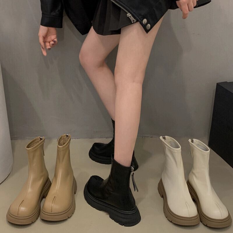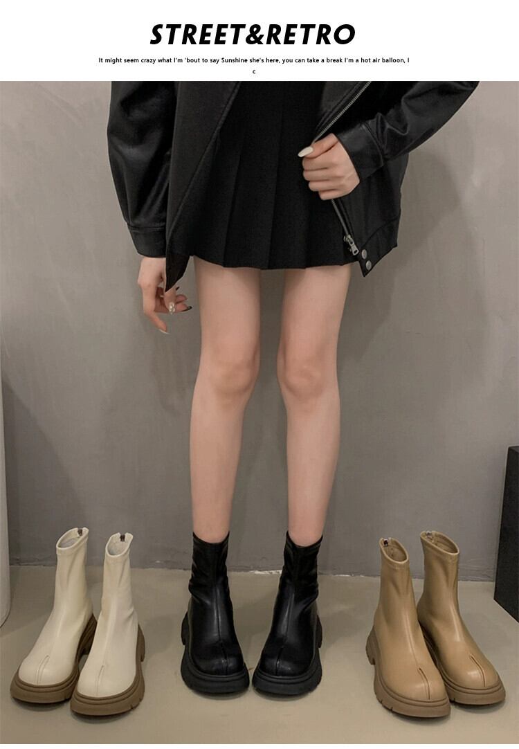 Jia Bujia ブーツ レディース ショートブーツ 2023 秋の新ファッション多用途レトロハンサム厚底フレンチスリムブーツ 靴 シューズ オータム 秋物 jxjxf92954130561