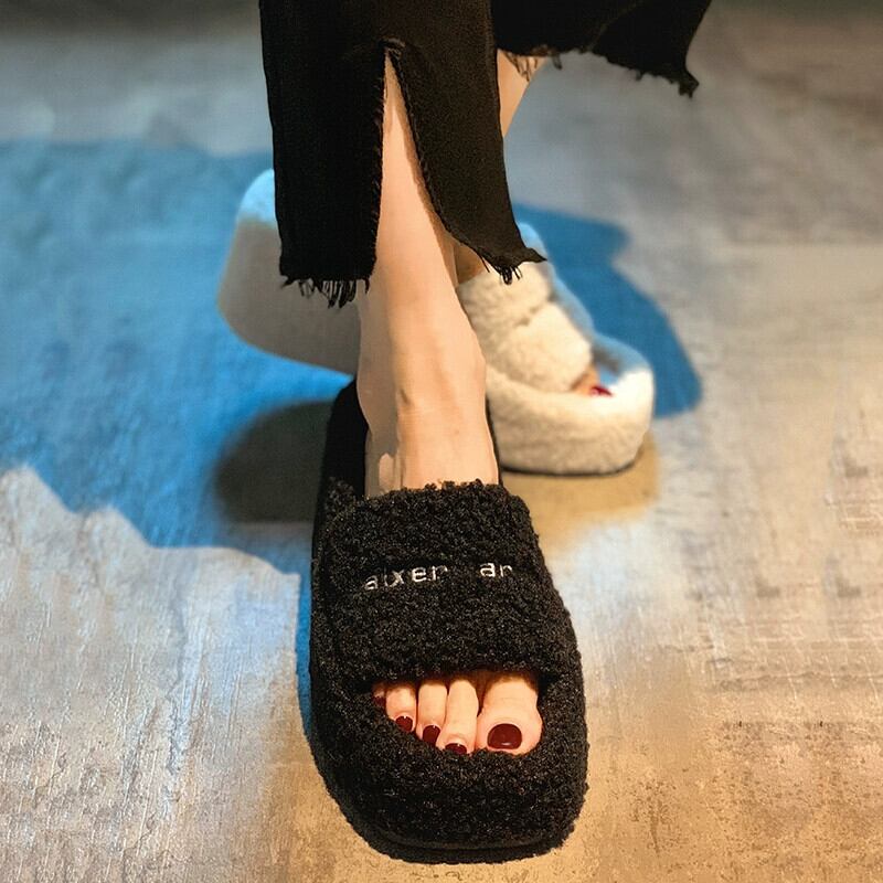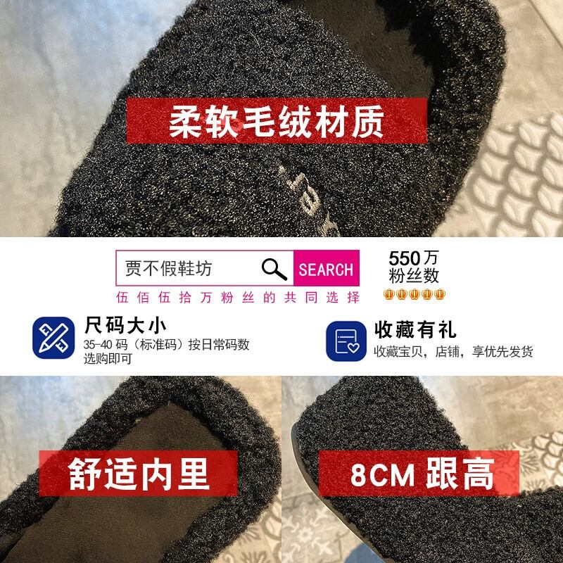 Jia Bufake スリッパレディースアウター 2023 秋の新スタイルレトロ多用途小さなウェッジヒール comtable 毛皮のようなトレンド ミュール 靴 シューズ オータム 秋物 jxjxf10554869409