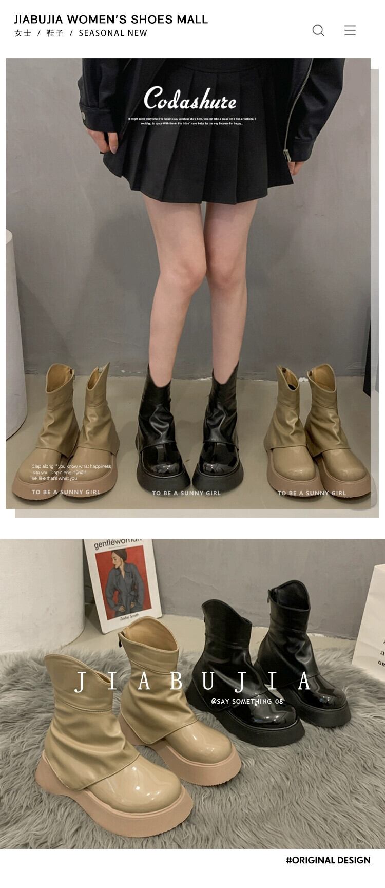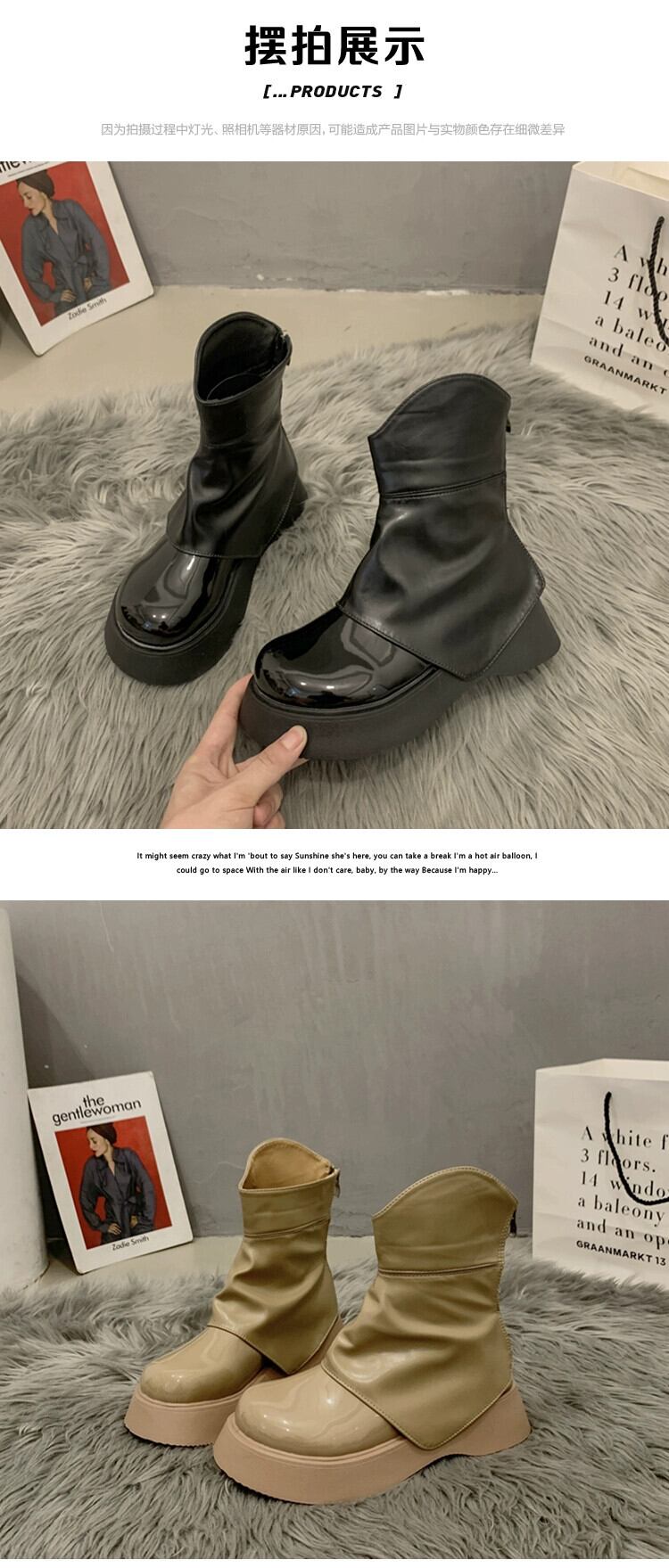 Jia Bujia ショートブーツ女性 2023 秋の新ファッション多用途少しレトロなハンサムな厚底ズボンブーツ 靴 シューズ オータム 秋物 jxjxf7182972429