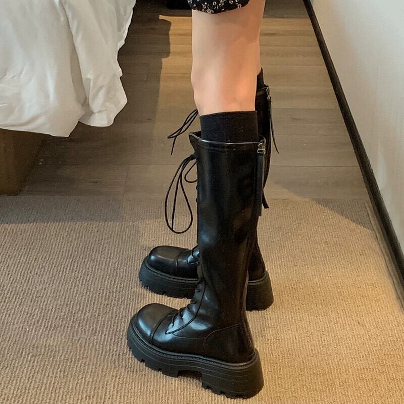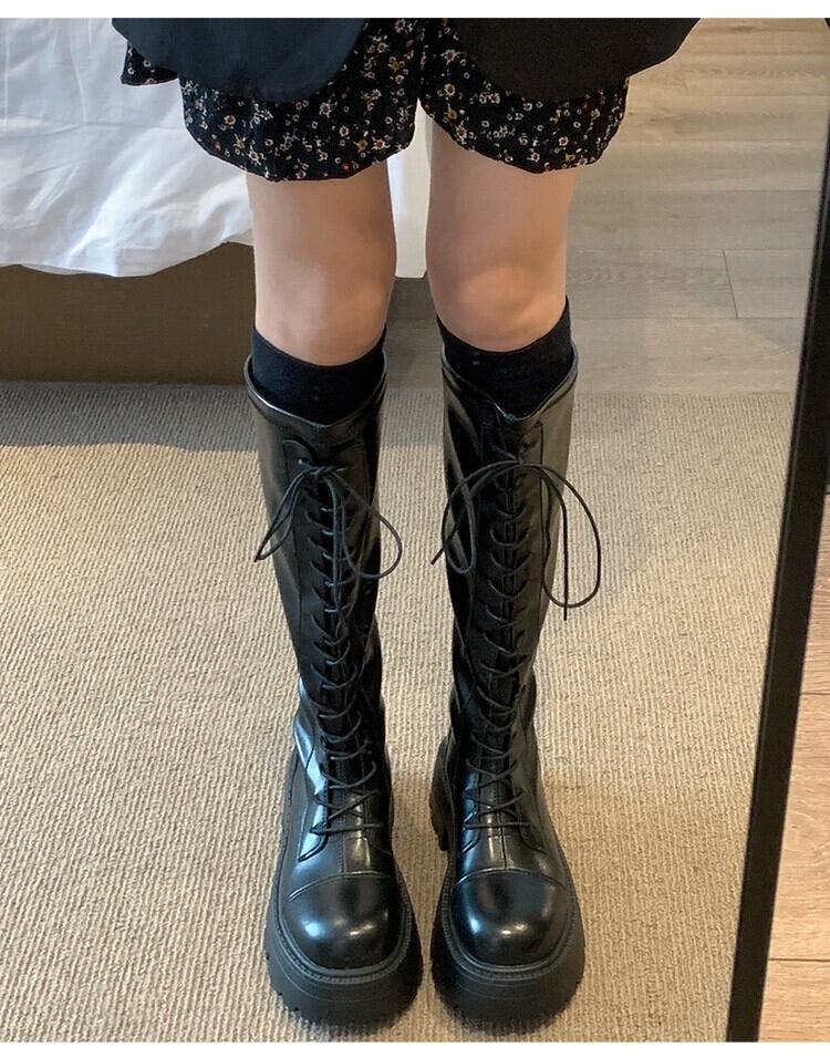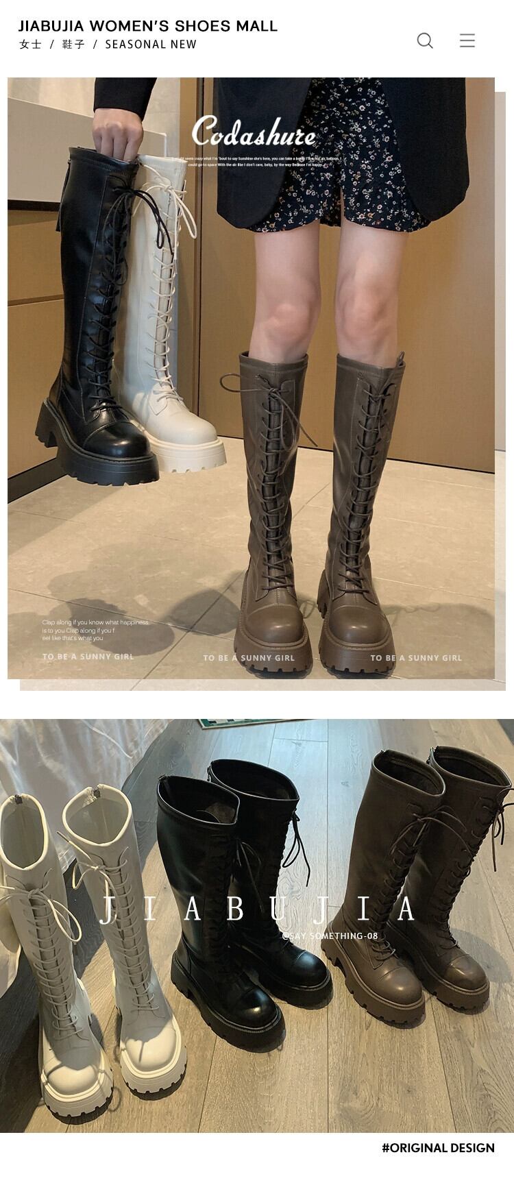 Jia Bujia ニーハイブーツの女性 2023 秋の新作スリムで多用途な英国スタイルのレトロなハンサムな騎士のブーツ 靴 シューズ オータム 秋物 jxjxf48470258782
