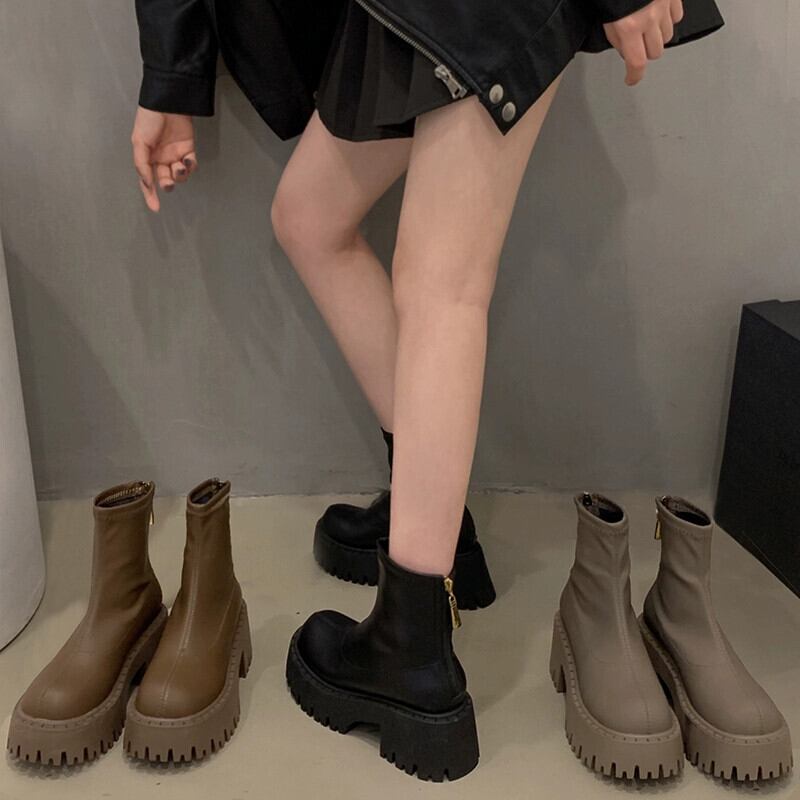 Jia Bufake ショートブーツ女性 2023 秋の新ファッション高め小さな厚いヒール痩身レトロスリムブーツトレンド 靴 シューズ オータム 秋物 jxjxf9561778434
