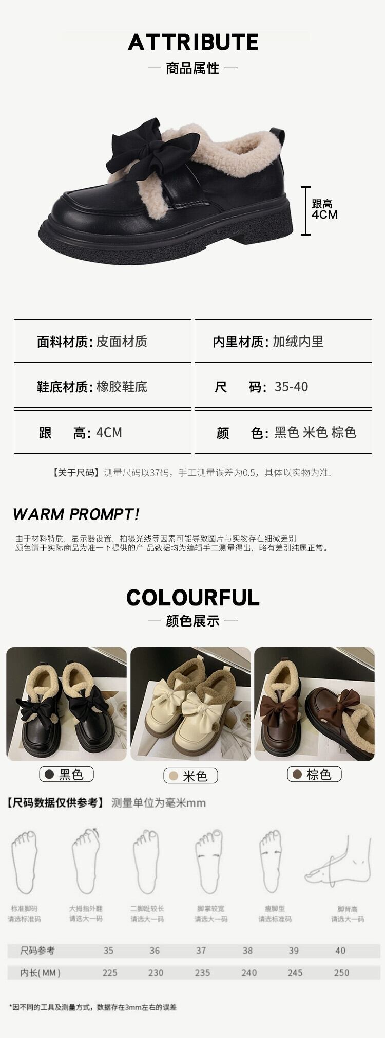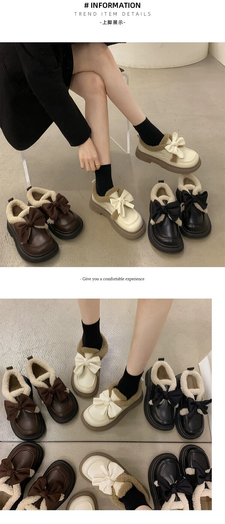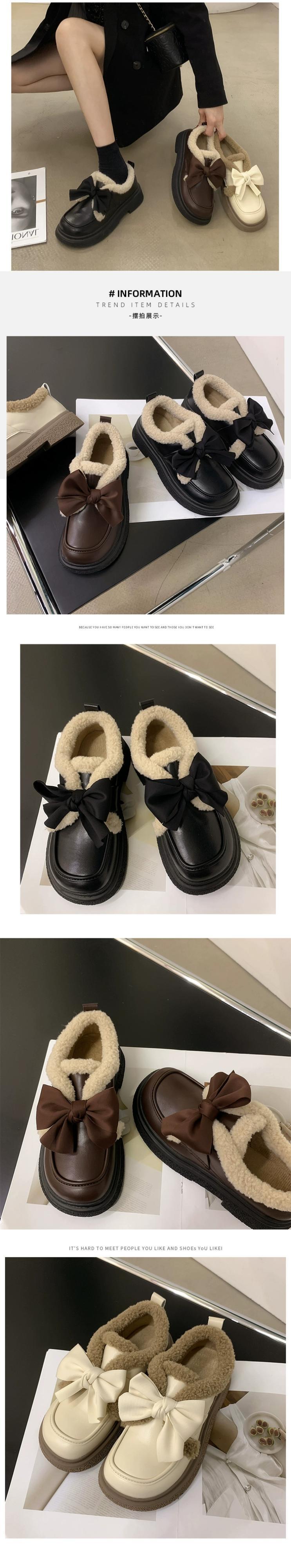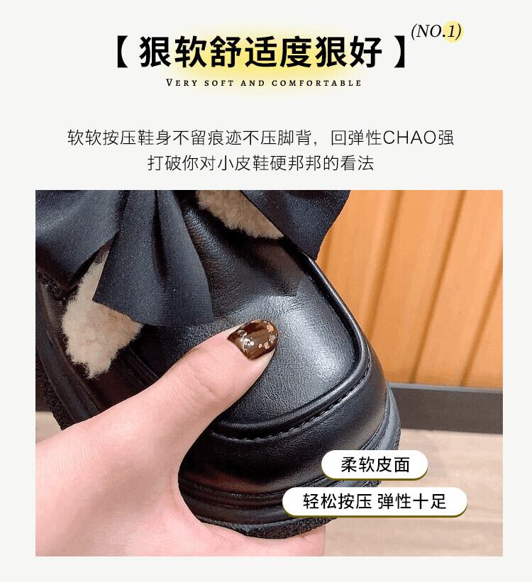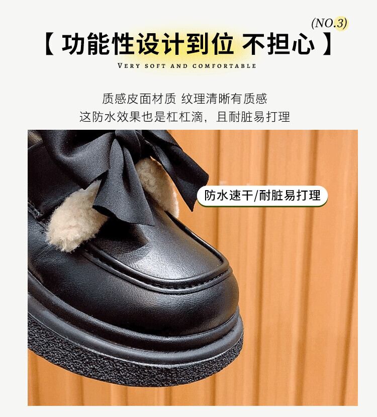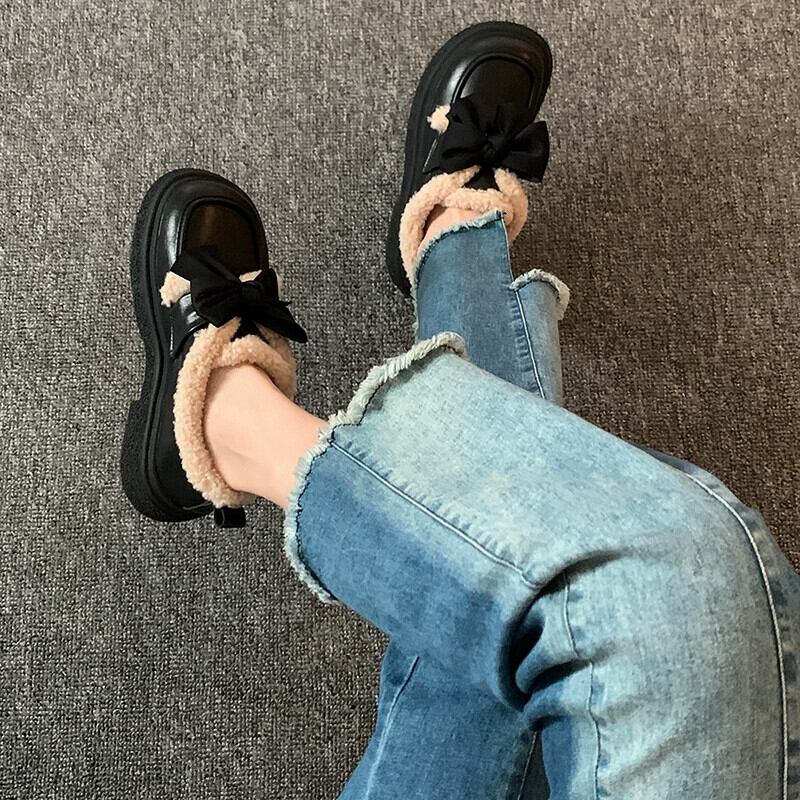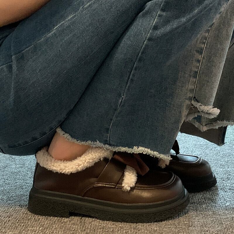 Jia Bujia レディース 小さな革靴 2023 秋暖かく快適な弓かわいい英国スタイルの綿の靴のトレンド シューズ リボン コットン 大人ガーリー スウィート キュート カジュアル オータム 秋物 レザー jxjxf18494369773