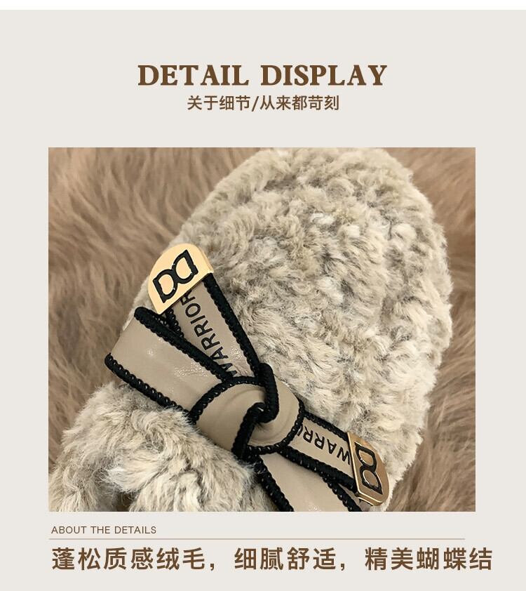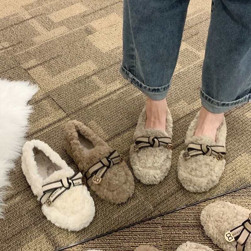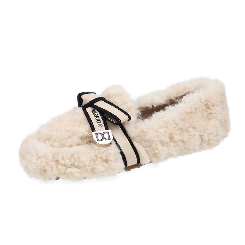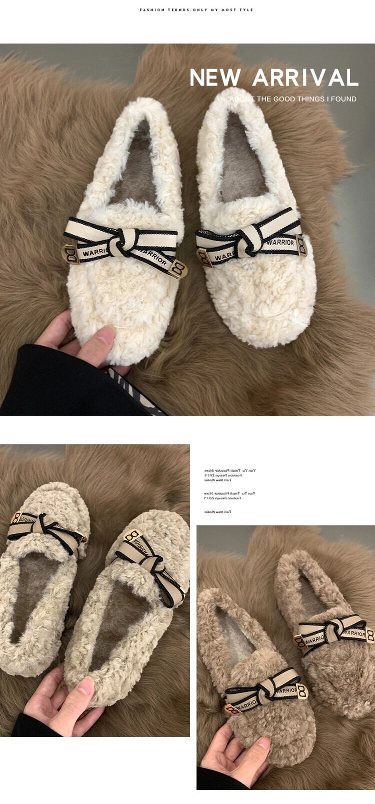 Jia Bujia 秋の毛皮のような靴の女性 2023 新ファッション弓フラット comtable レトロソフトソールビーニーシューズ リボン オータム 秋物 jxjxf19601351729