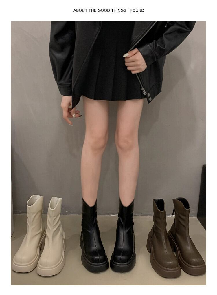 Jia Bufake ショートブーツ女性 2023 秋のインターネット有名人スリムで多用途の小さな厚いヒールフレンチスリムブーツ 靴 シューズ オータム 秋物 jxjxf93511945998