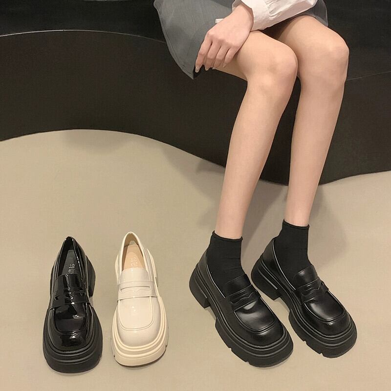 Jia Bujia 女性の靴 2023 秋多用途レトロ小さな革の靴太いヒール厚い底の西洋スタイルのローファー シューズ オータム 秋物 レザー jxjxf47395442433