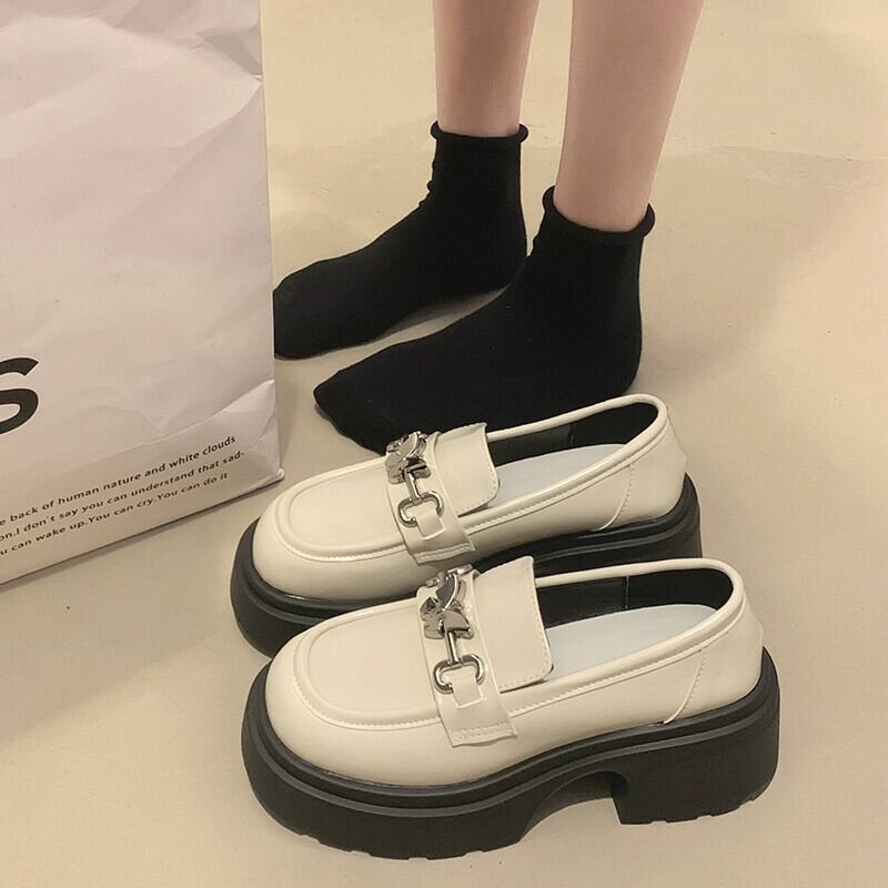 Jia Bujia 英国小さな革の靴の女性黒厚い底 2023 新しい高さローファーフレンチスリッポン秋と冬のスタイル シューズ ブラック オータム 秋物 ウィンター 冬物 レザー jxjxf39427518660