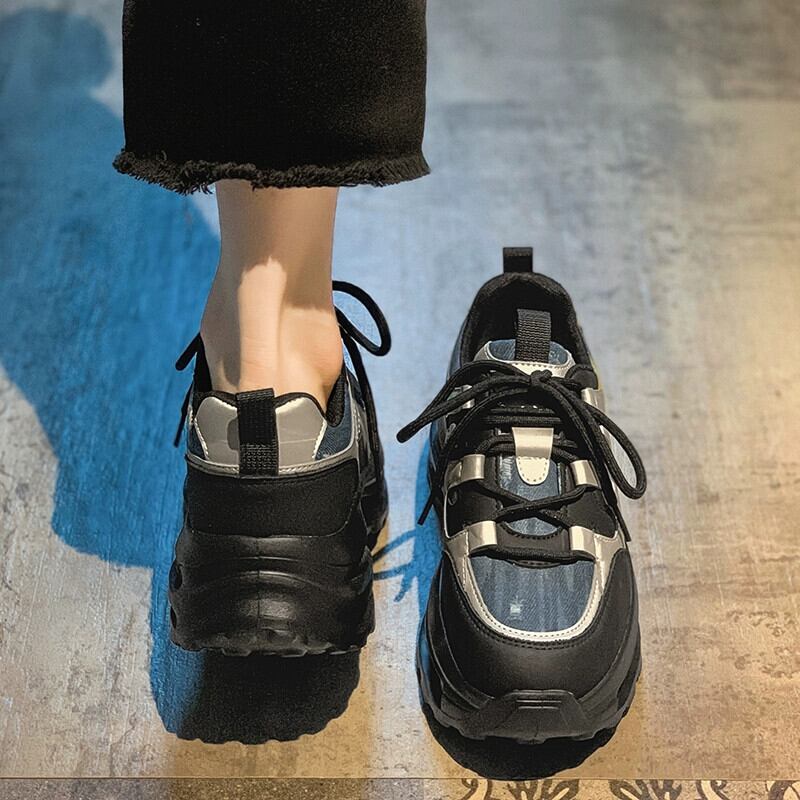 Jia Bufake レディース ダッドシューズ 2023 秋の新作トレンディな通気性のある厚底カジュアルランニングスニーカー 靴 オータム 秋物 jxjxf28639023386