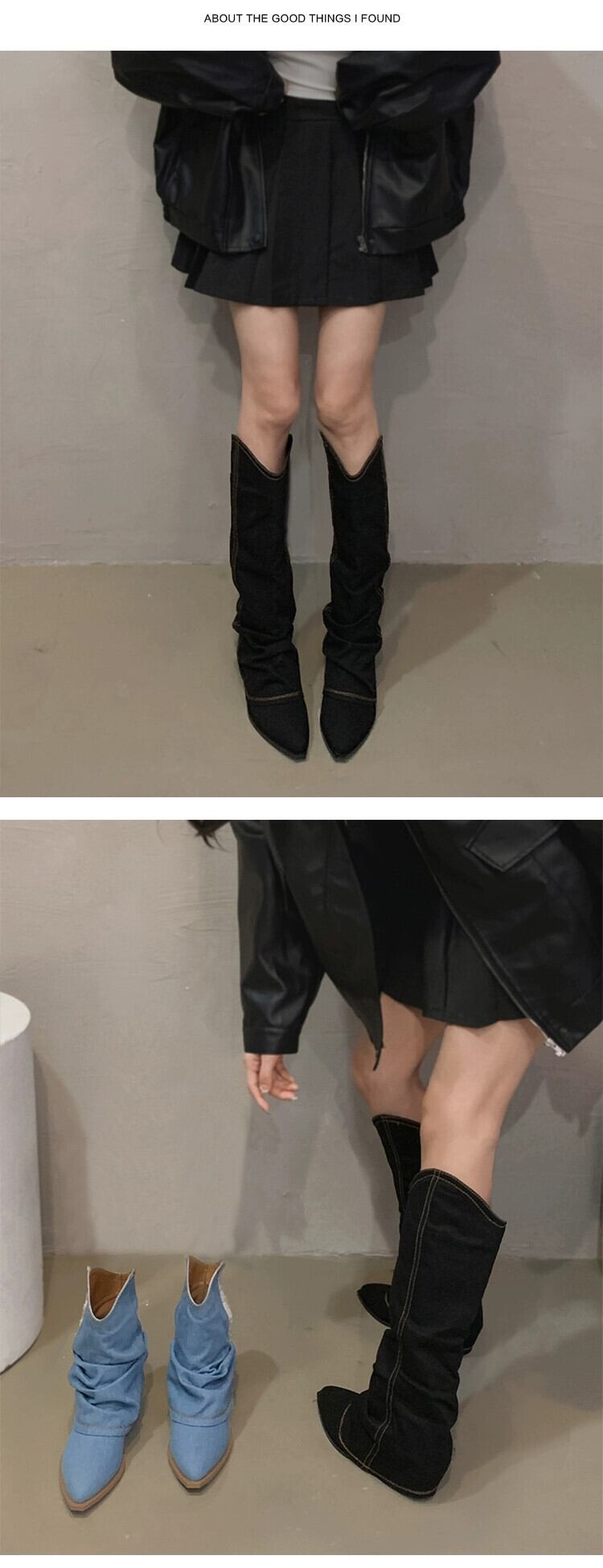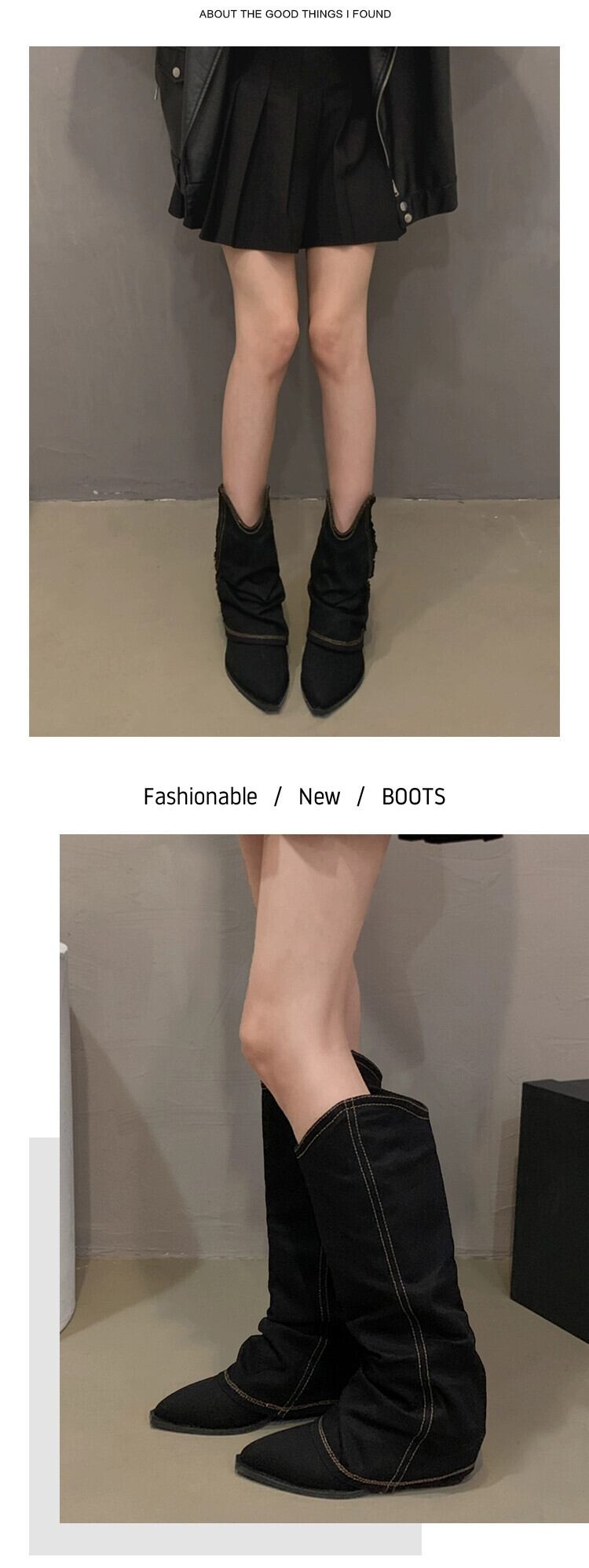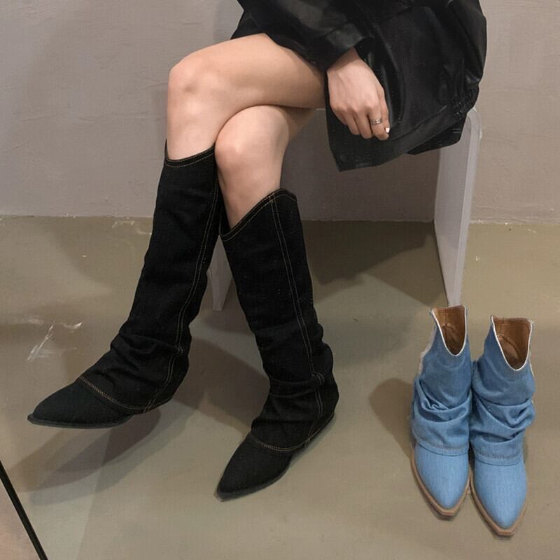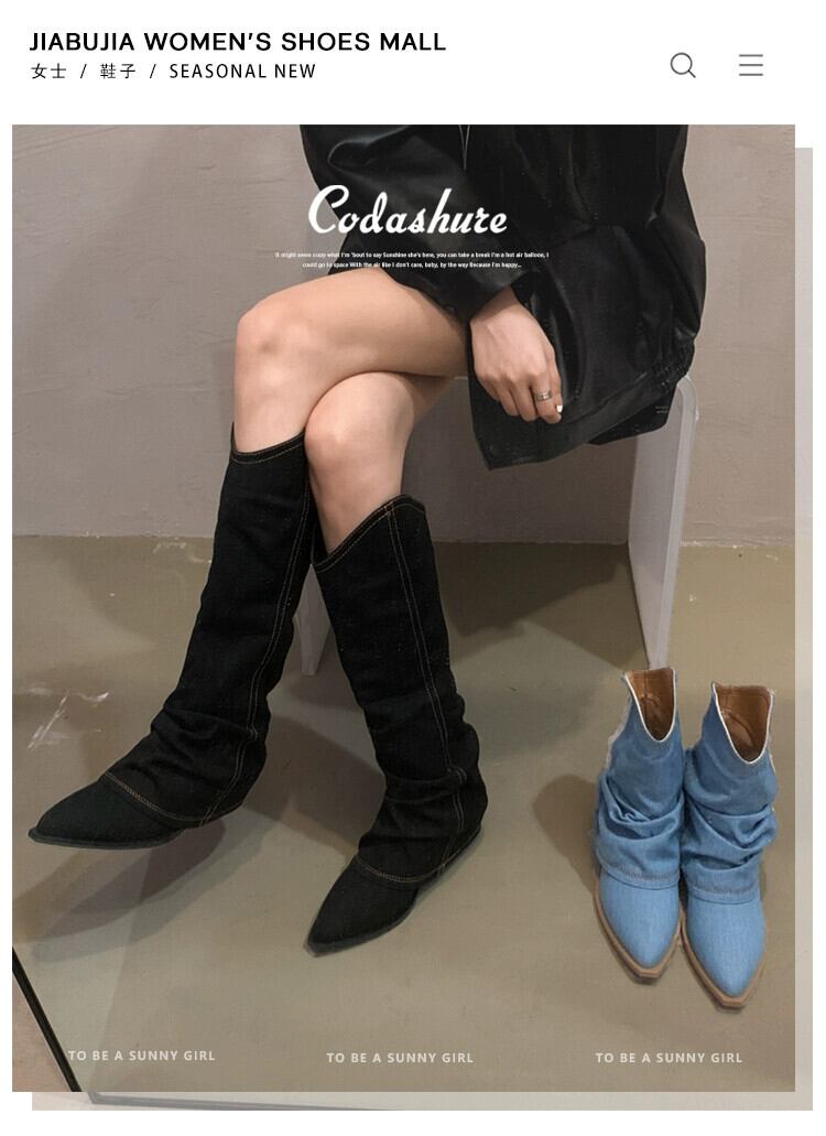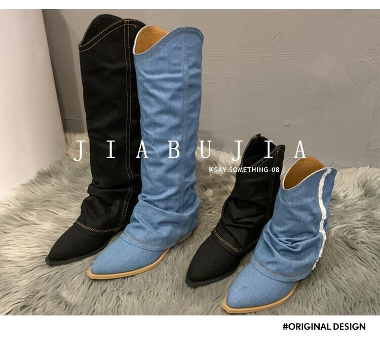 Jia Bujia インターネットセレブブーツ女性の 2023 秋の新作トレンディなフレンチポインテッドトゥ太いヒールズボンブーツ 靴 シューズ オータム 秋物 jxjxf86156579416