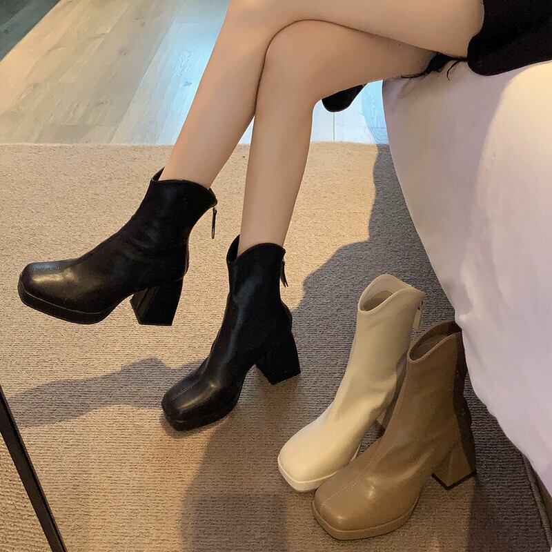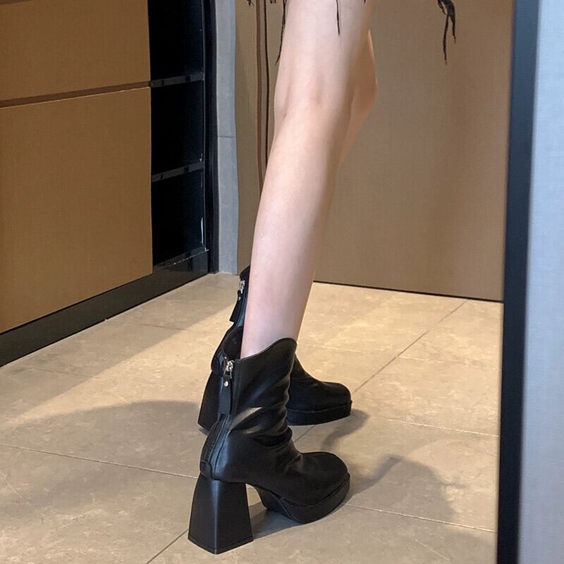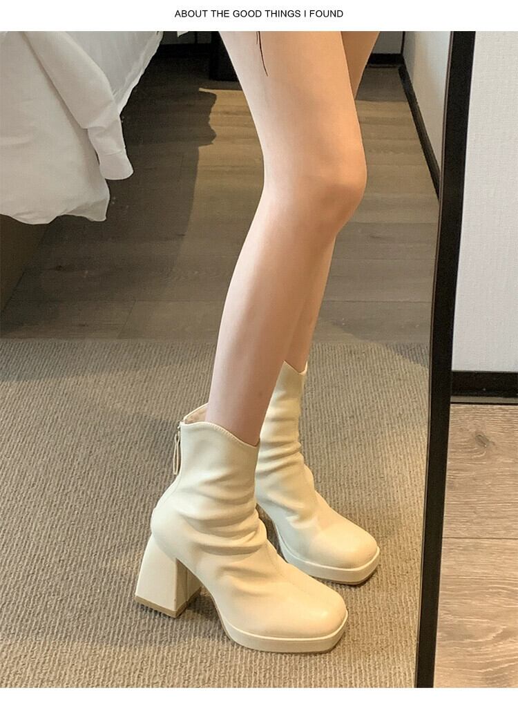 Jia Bujia ブーツ レディース ショートブーツ 2023 秋多用途フレンチレトロヒール可能なスリムブーツ 靴 シューズ オータム 秋物 jxjxf69925607032