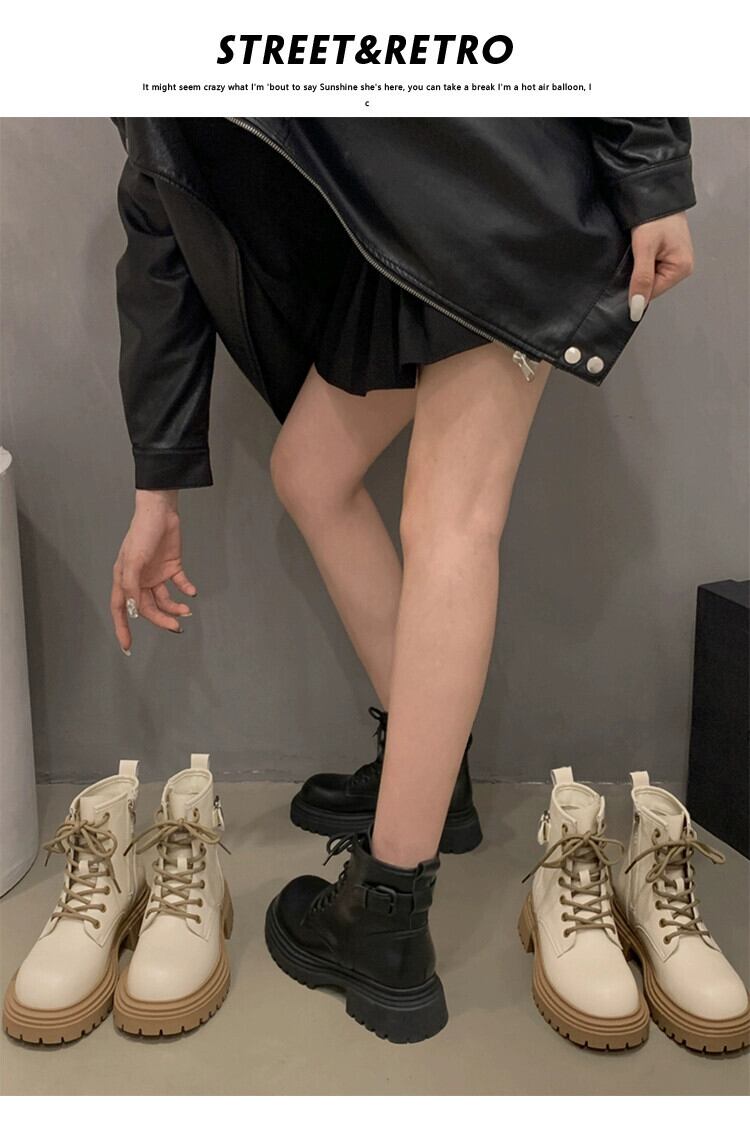 Jia Bufake ショートブーツ女性の 2023 秋多用途レトロオートバイ太いヒール英国スタイルのマーティンブーツ 靴 シューズ オータム 秋物 jxjxf45405322499
