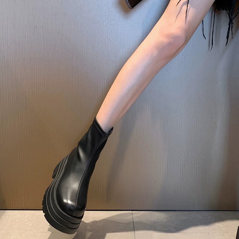 Jia Bujia ブーツ レディース ショートブーツ 2023 秋の新レトロハンサムな少し厚底オートバイブーツトレンディな 靴 シューズ オータム 秋物 jxjxf93770282573
