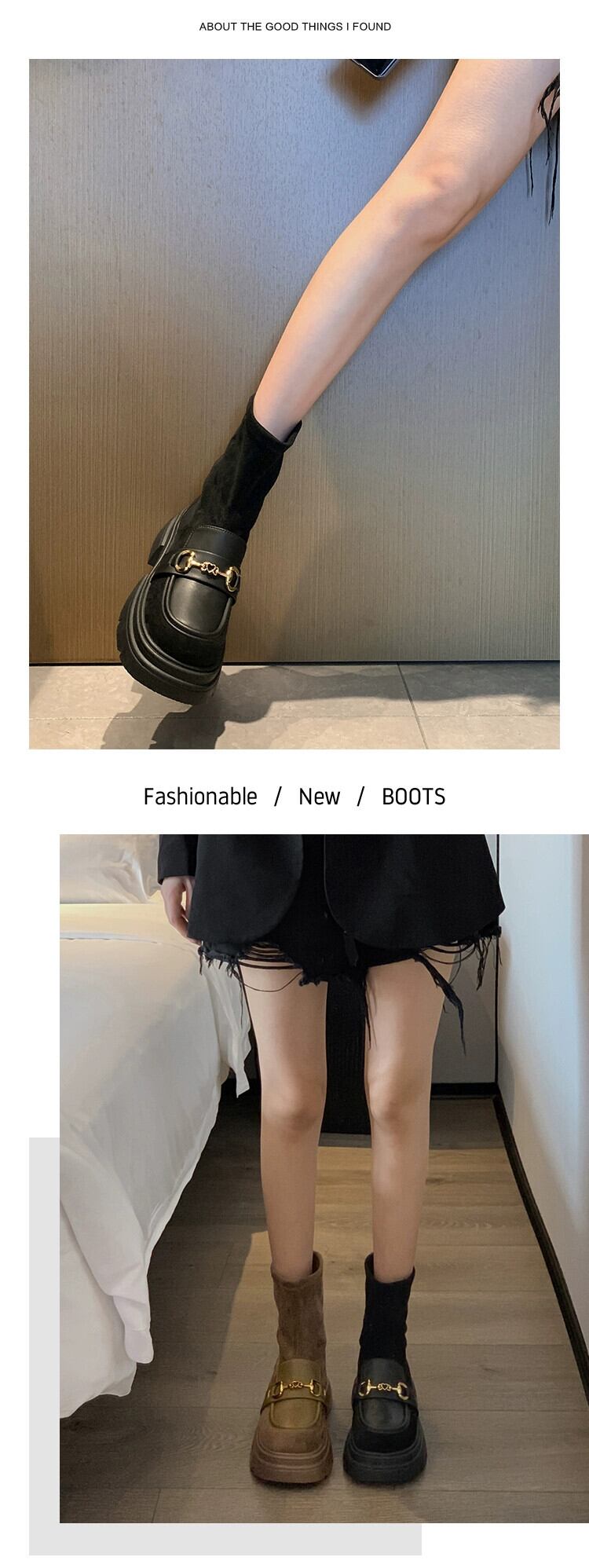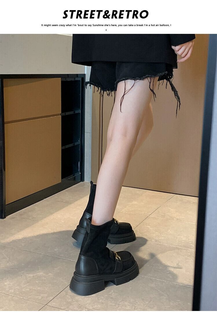 Jia Bujia 厚底弾性ブーツの女性 2023 秋の新ファッション金属多用途 eign スタイル comtable 痩身ショートブーツ 靴 シューズ エラスティック 伸縮 オータム 秋物 jxjxf82268129714