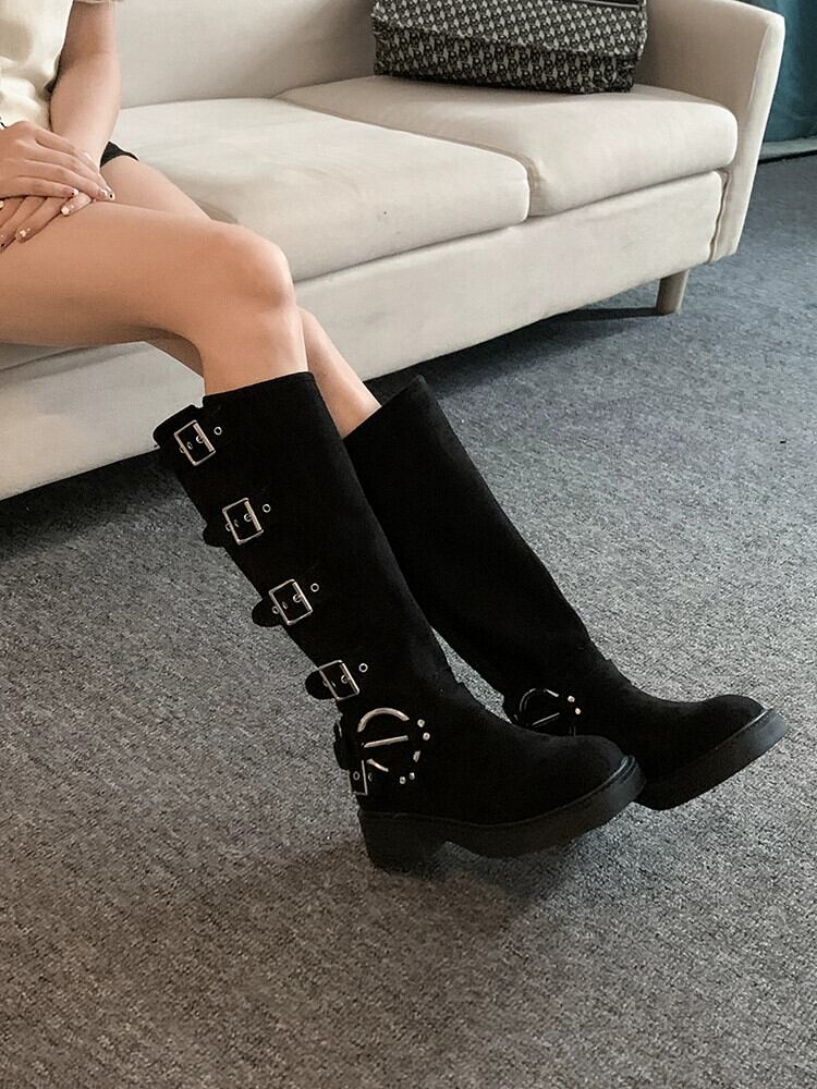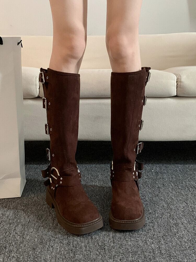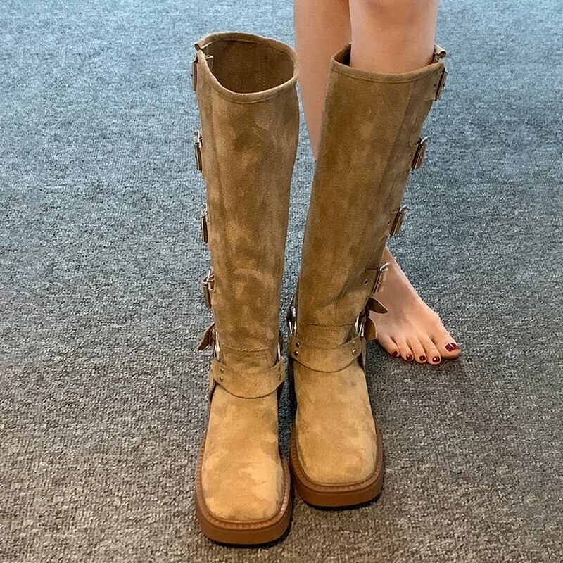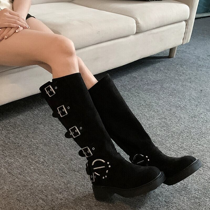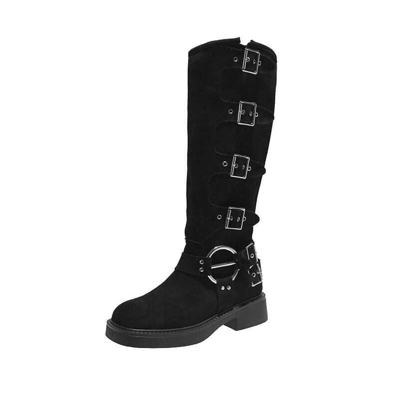 Jia Bujia 厚底ブーツの女性 2023 秋の新しいレトロなスタイルのベルトバックルアメリカンハンサムなオートバイのブーツ 靴 シューズ オータム 秋物 ハーネス jxjxf9033272668