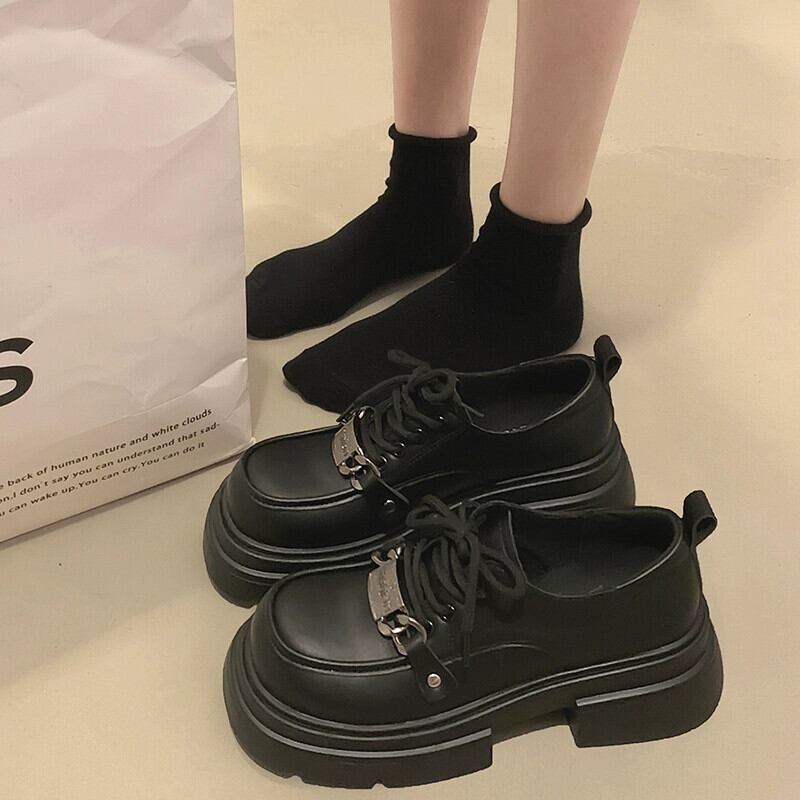 Jia Bujia 婦人靴 2023 秋の新多用途ローファーレトロ comtable 厚いヒール英国スタイルの小さな革靴 シューズ オータム 秋物 レザー jxjxf38708060246