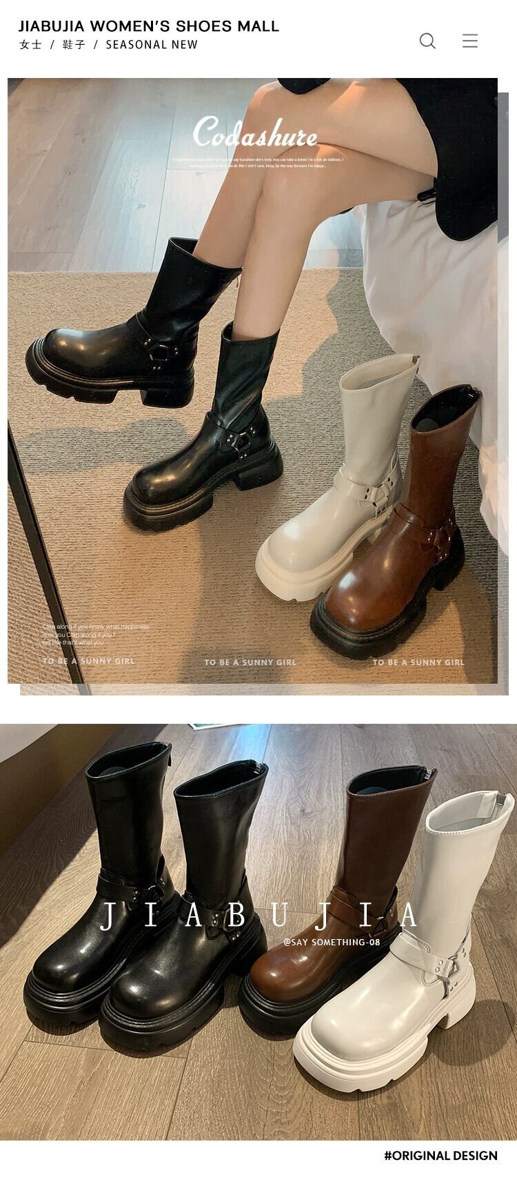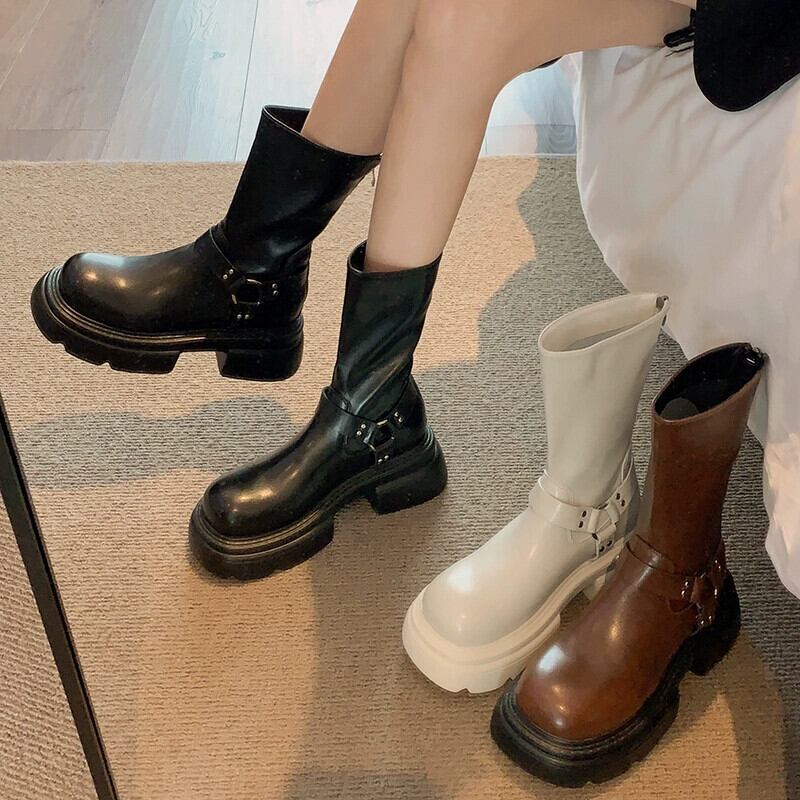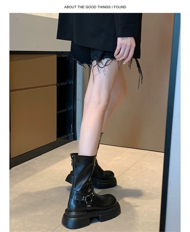 Jia Bujia ブーツ レディース ショートブーツ 2023 秋インターネットセレブ多用途レトロハンサム厚底ストリートスリムブーツ 靴 シューズ オータム 秋物 jxjxf48070649621