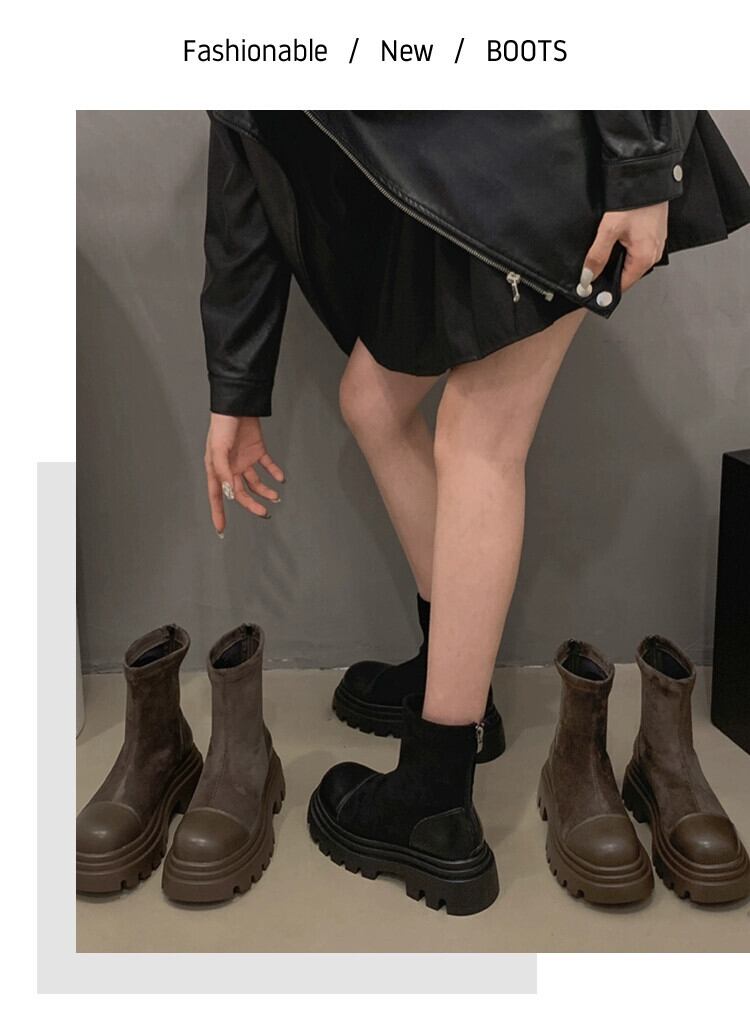 Jia Bujia ブーツ レディース ショートブーツ 2023 秋レトロ小型厚底英国スタイルスリムブーツ 靴 シューズ オータム 秋物 jxjxf81044459667