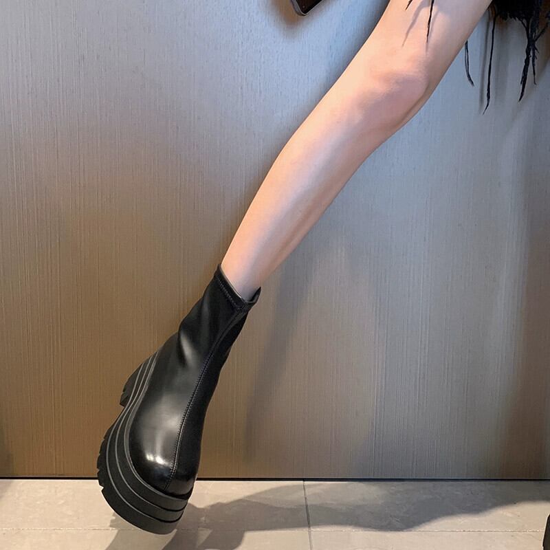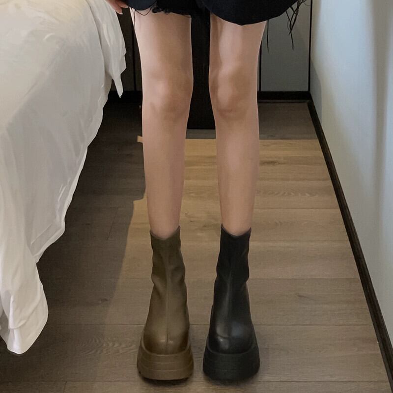 Jia Bufake ショートブーツ女性 2023 秋レトロ多用途小型厚底ハンサムスリムブーツトレンド 靴 シューズ オータム 秋物 jxjxf69207266518