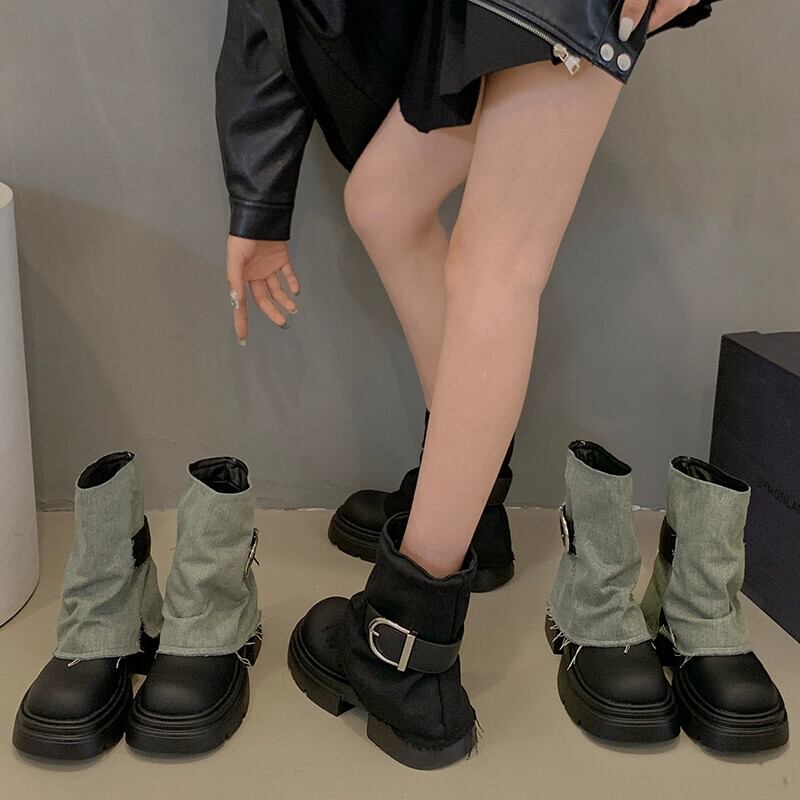Jia Bujia オートバイブーツの女性 2023 秋の新ハンサムファッション人気のレトロ太いヒールズボンショートブーツ 靴 シューズ オータム 秋物 jxjxf9171319206