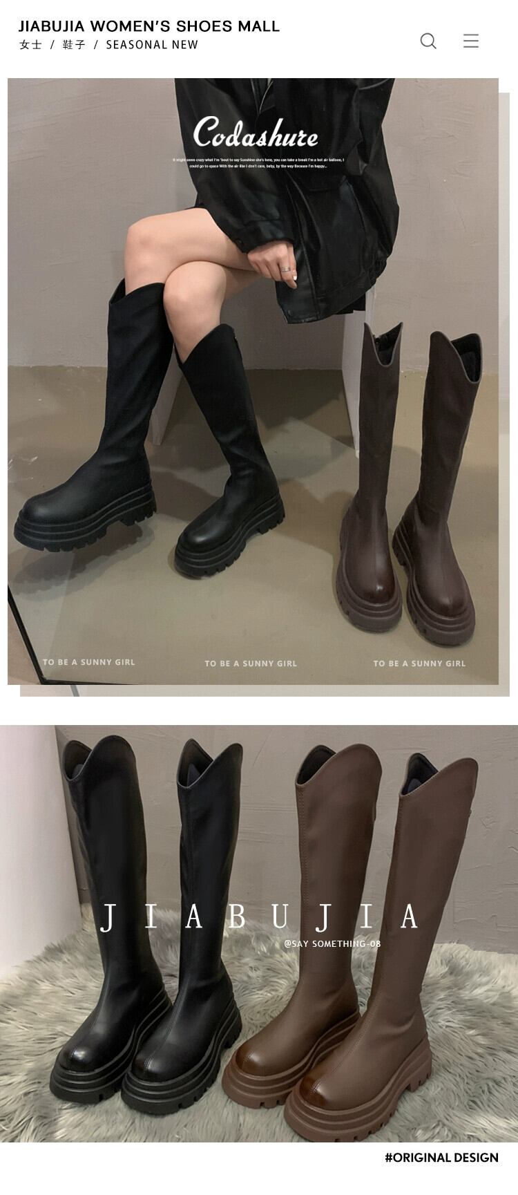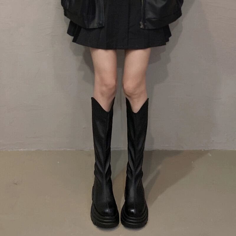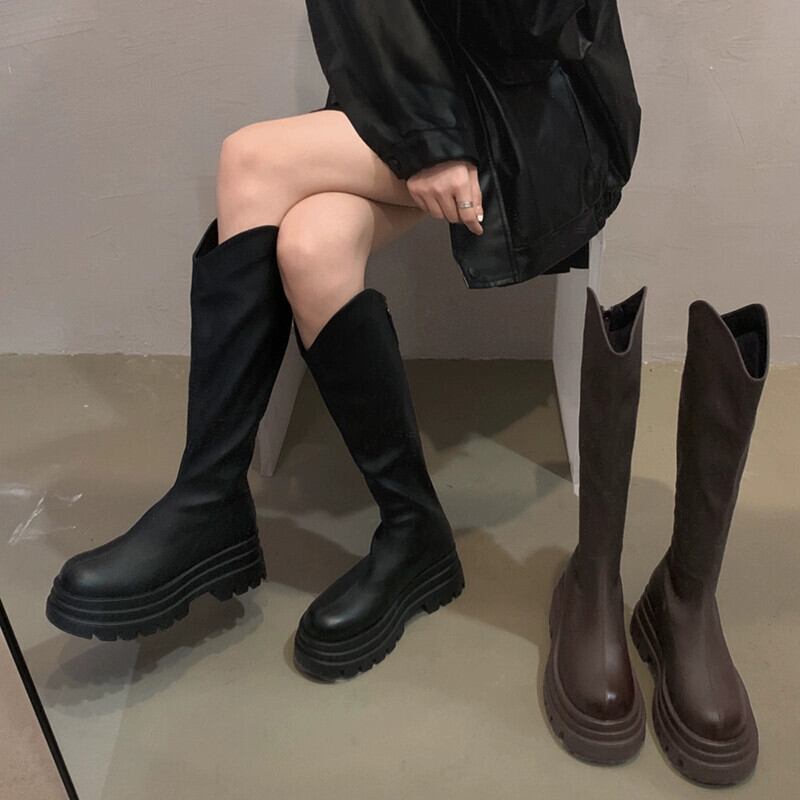 Jia Bufake ロングブーツの女性 2023 秋の新ファッションレトロ多用途小型厚底ハンサム騎士ブーツトレンド 靴 シューズ オータム 秋物 jxjxf3626682130