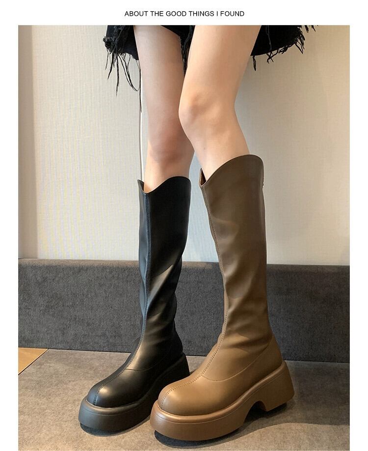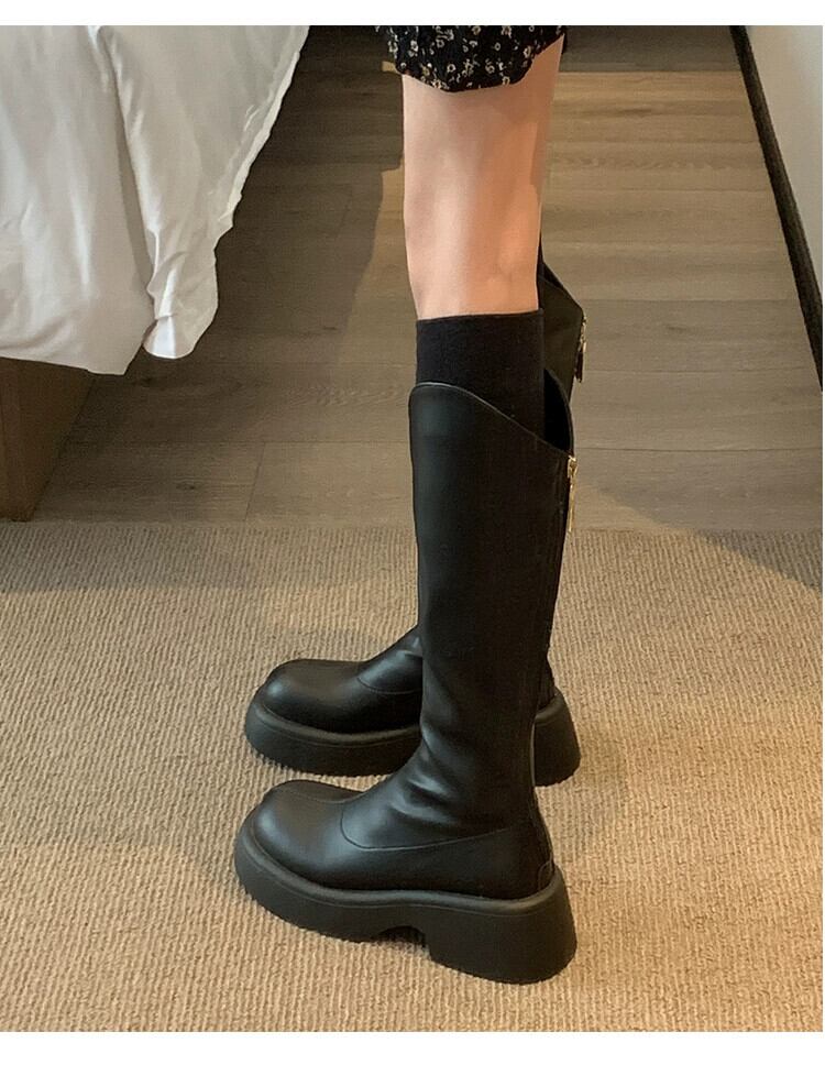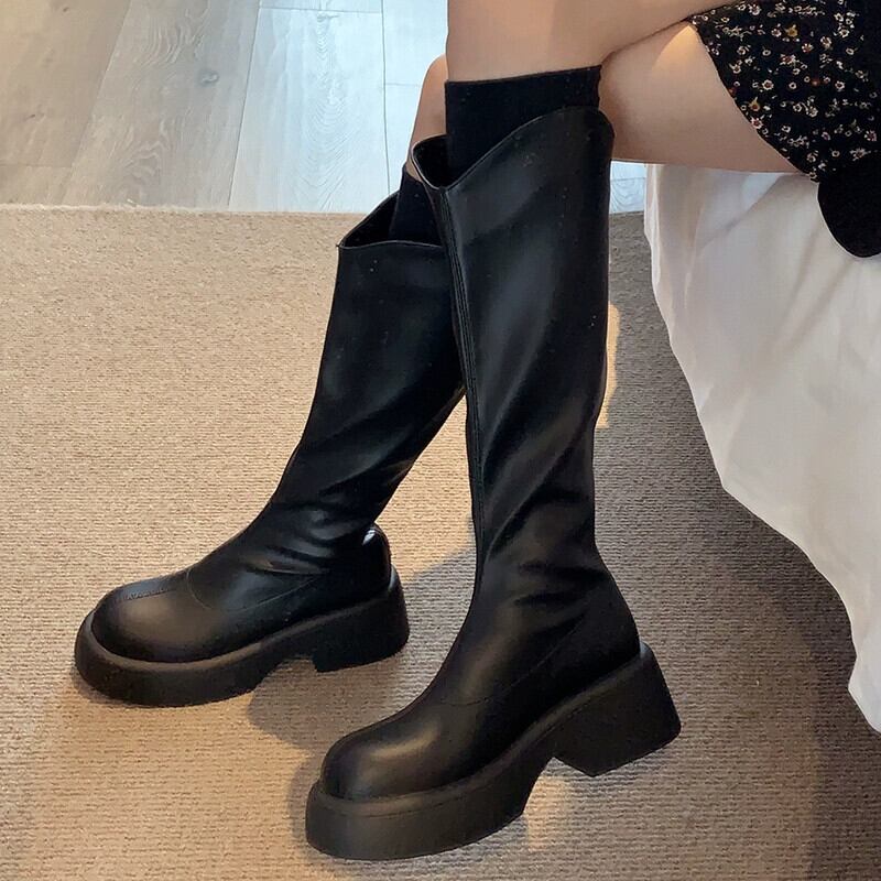 Jia Bujia ブーツ レディース ブーツ 2023 秋の新スリムで多用途のレトロなハンサムな厚底ストリート ナイト ブーツ 靴 シューズ オータム 秋物 jxjxf78324570643