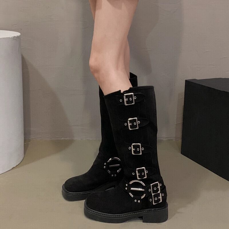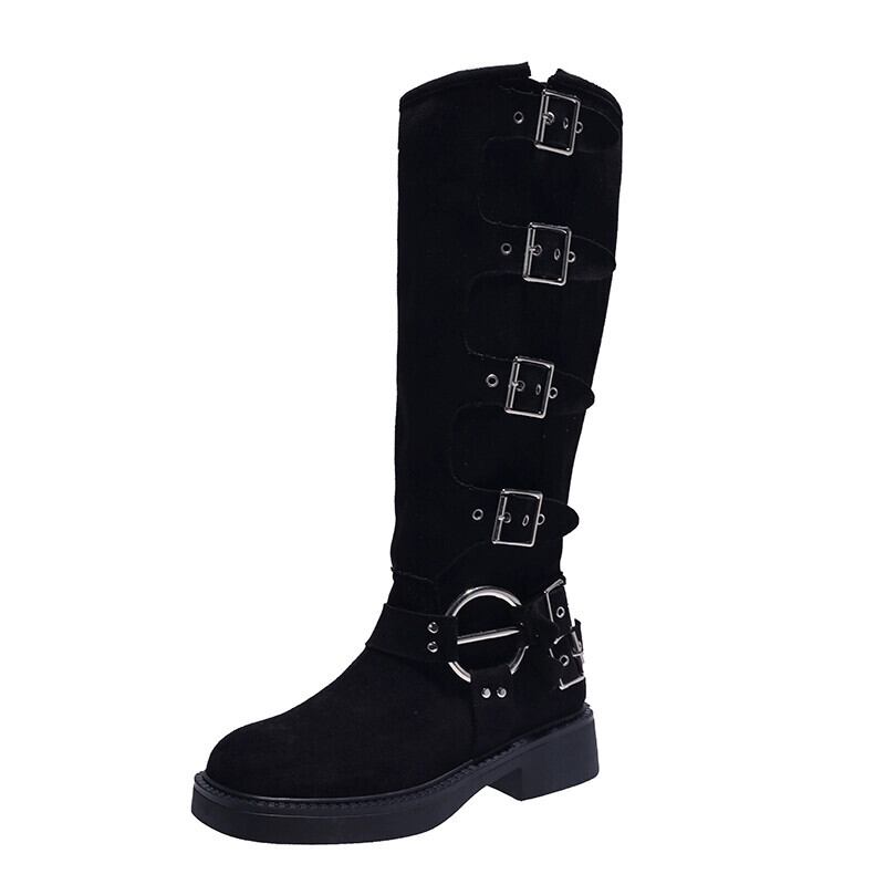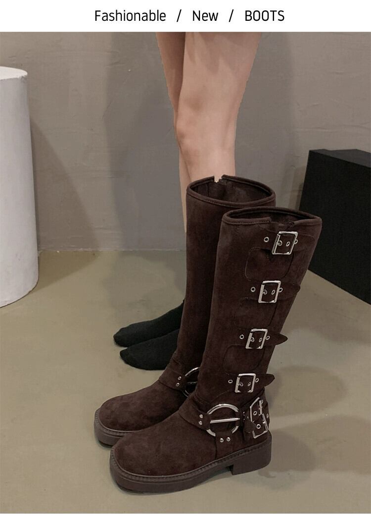 Jia Bufake ブーツの女性 2023 新しい秋のファッション多用途レトロベルトバックル太いヒールハンサム騎士ブーツトレンド 靴 シューズ オータム 秋物 ハーネス jxjxf4746577209