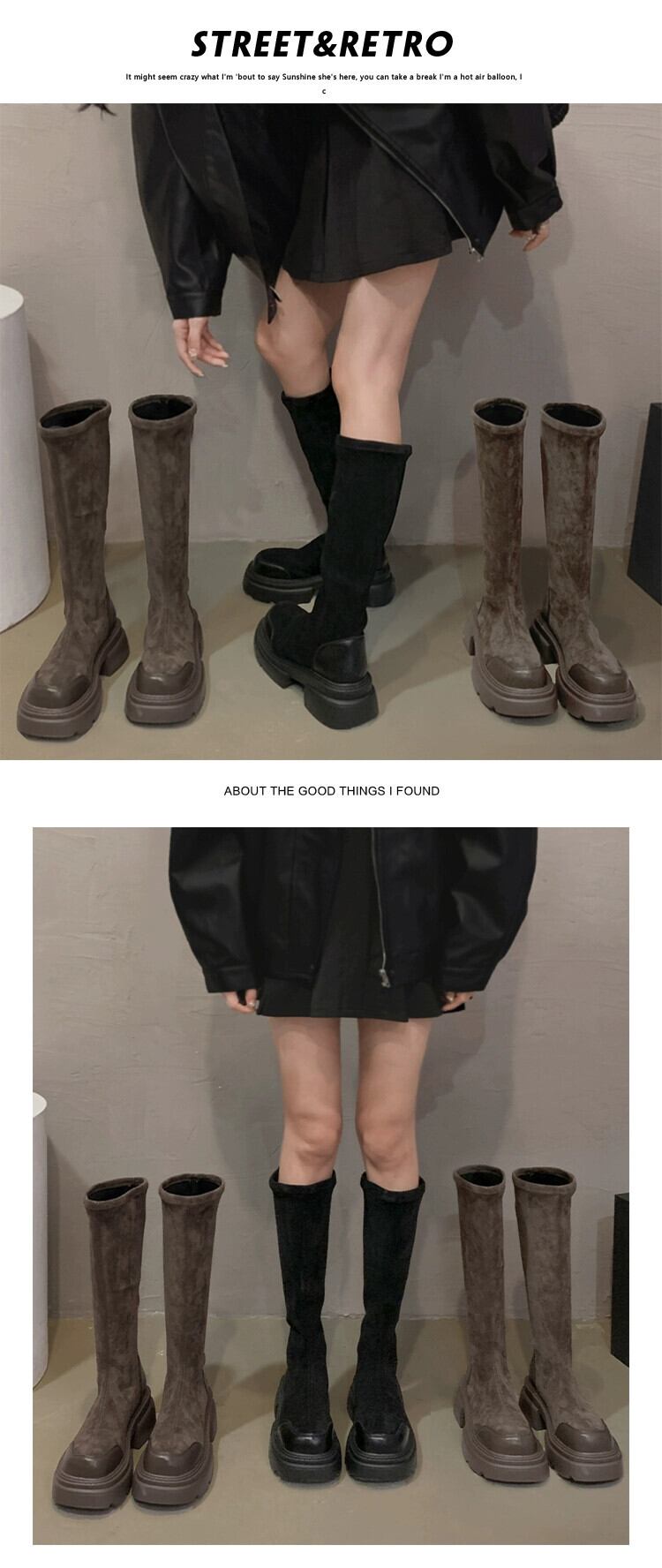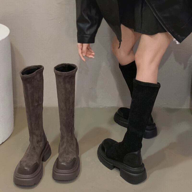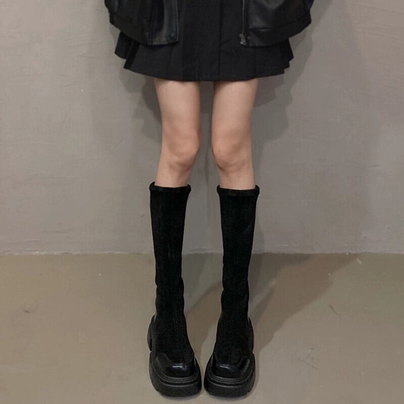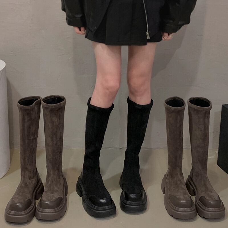 Jia Bufake ブーツの女性 2023 秋の新超多用途レトロスリム厚底弾性スリムブーツトレンディな 靴 シューズ エラスティック 伸縮 オータム 秋物 jxjxf59223999749